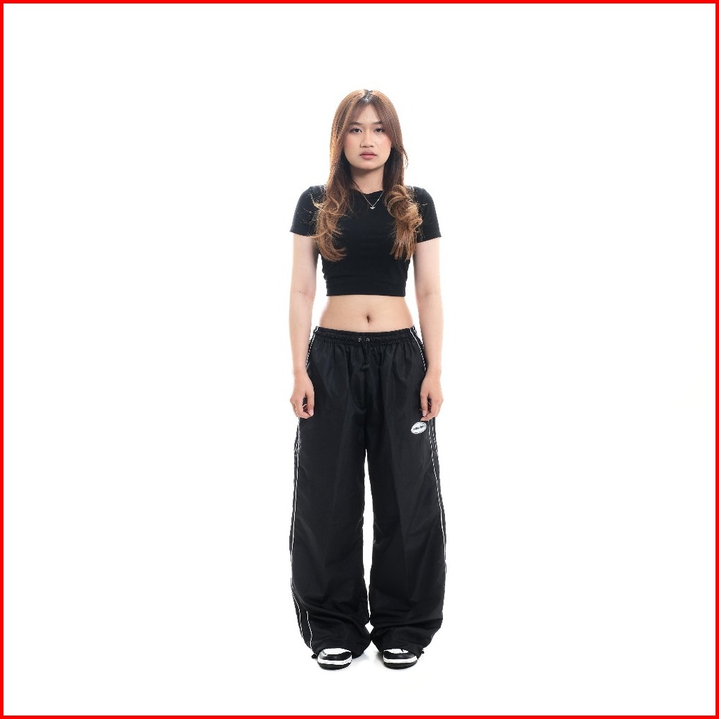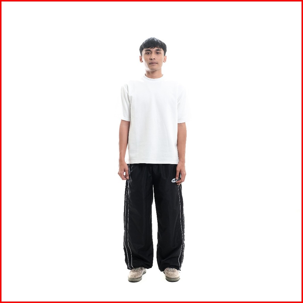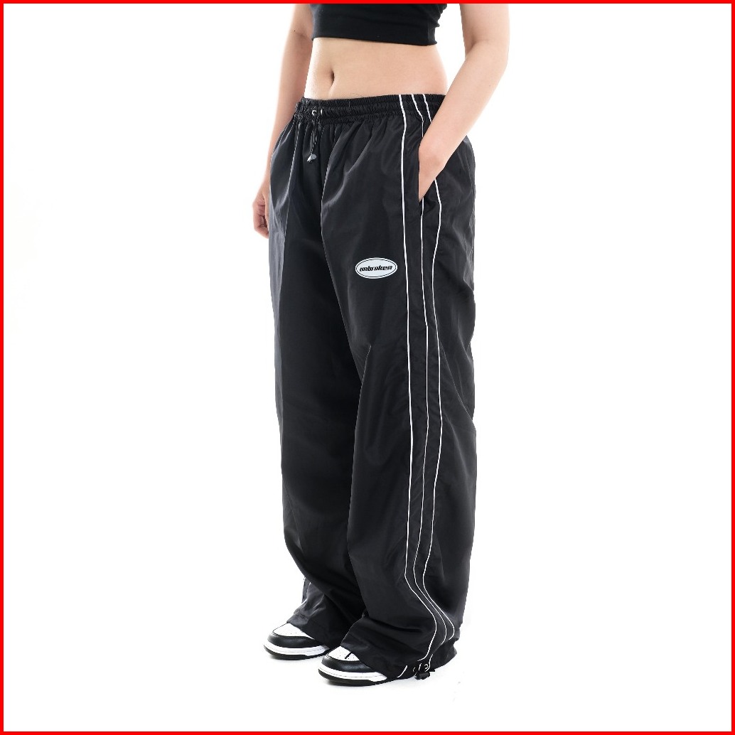 Unbroken Baggy Pants Three Line White In Black Loose Casual