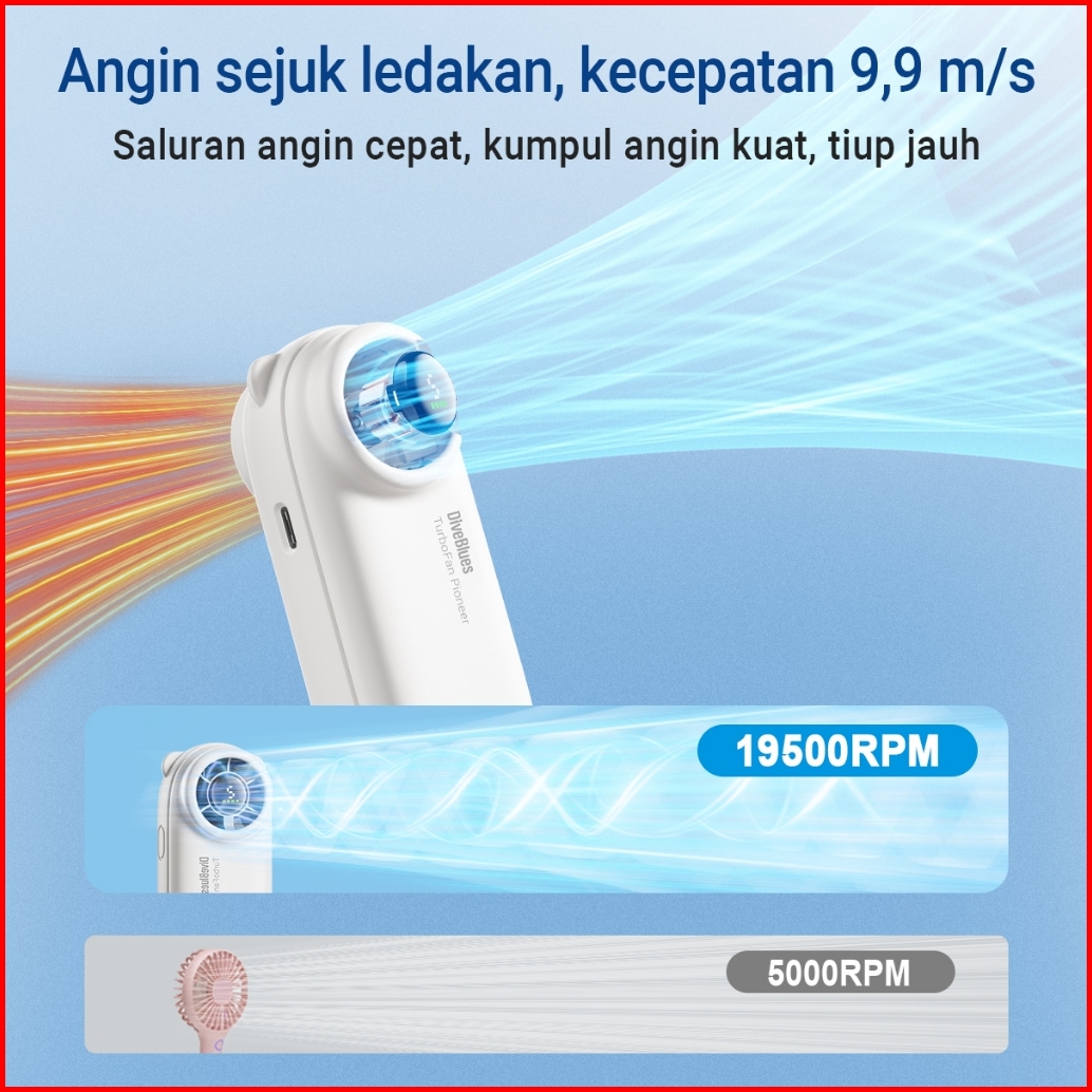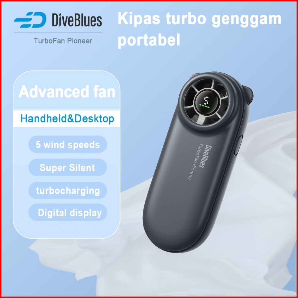 Diveblues Kipas Mini Portable Turbo 5 Gear Wind Speed Pendingin Mini 19500rpm Kipas Angin Mini