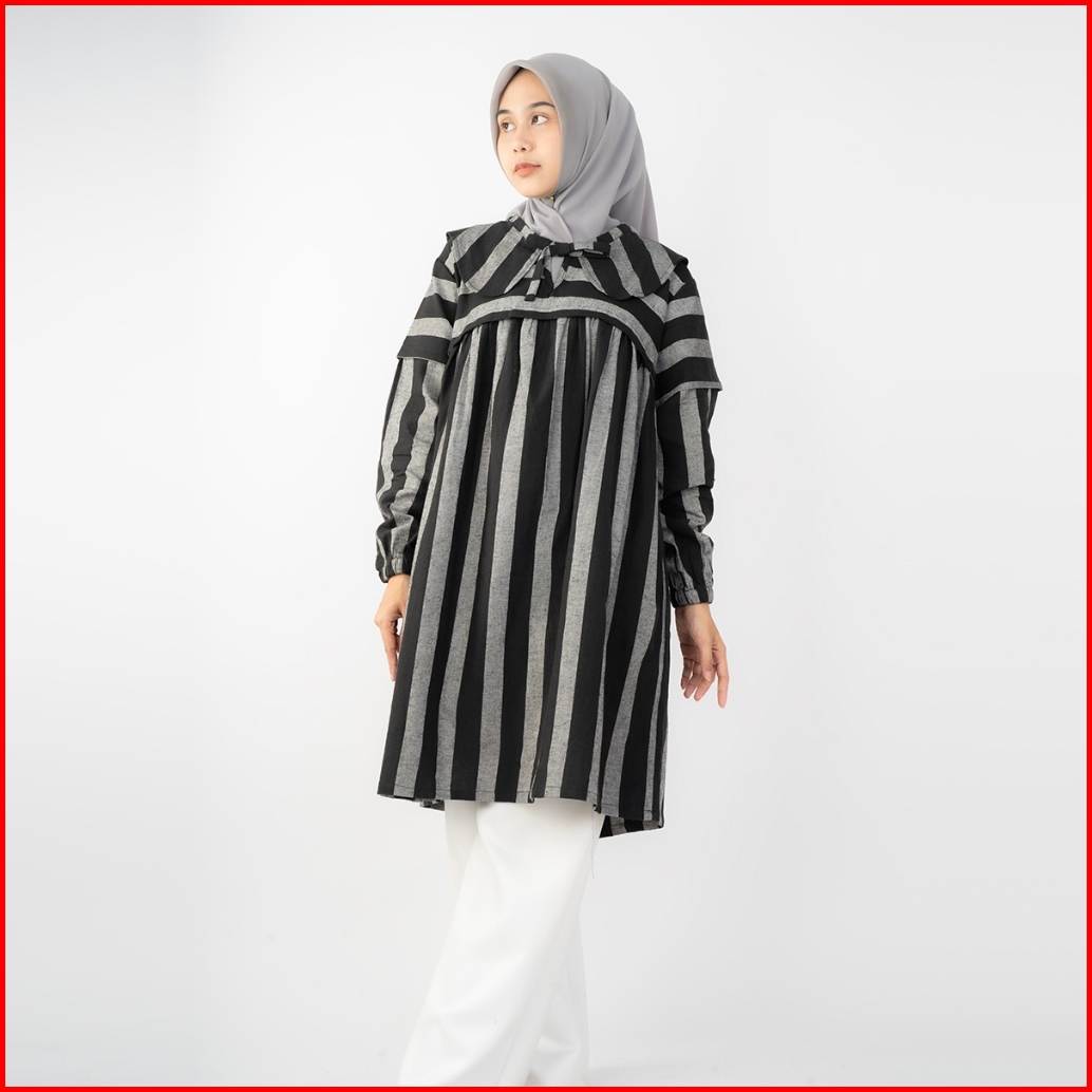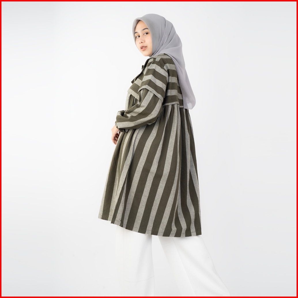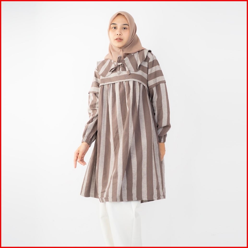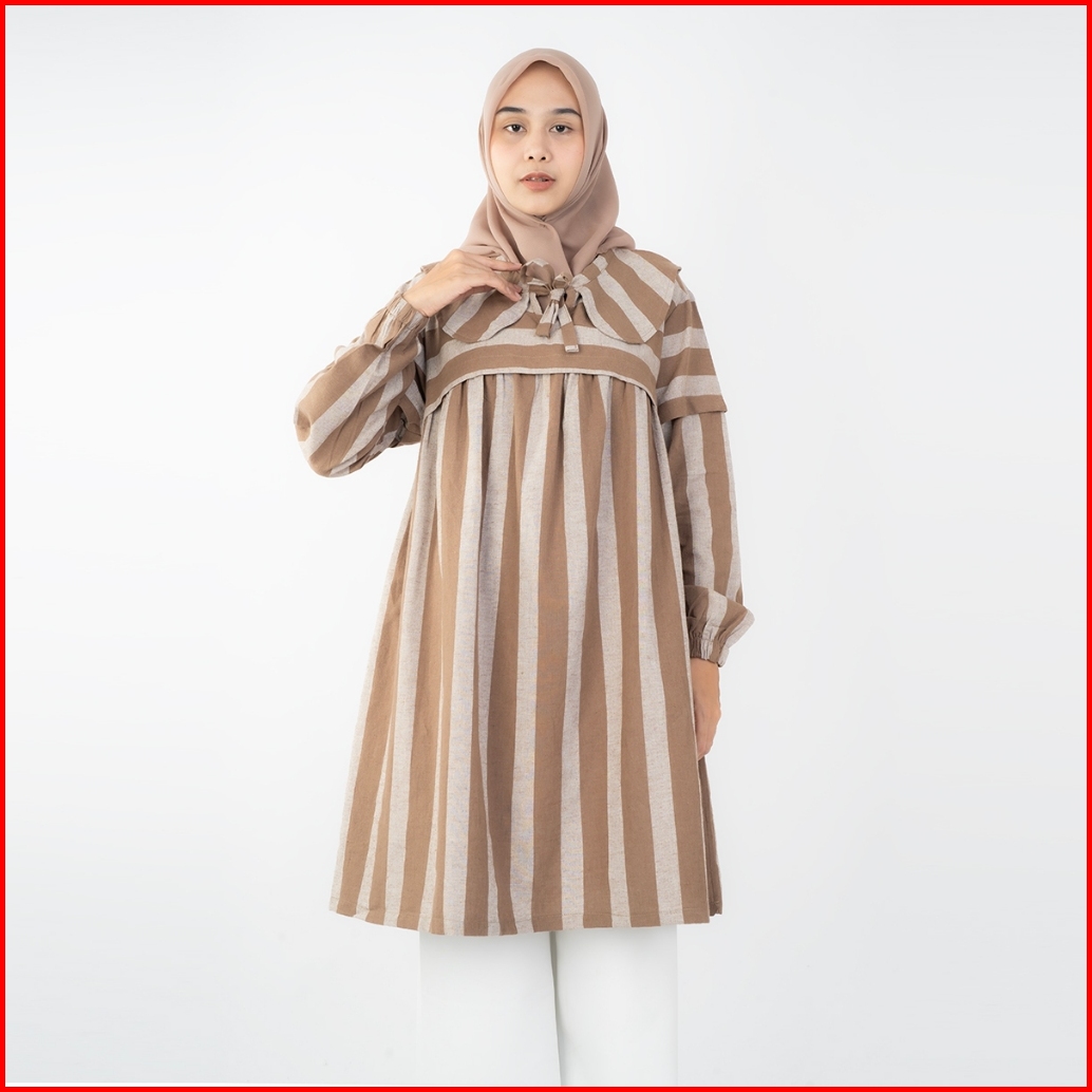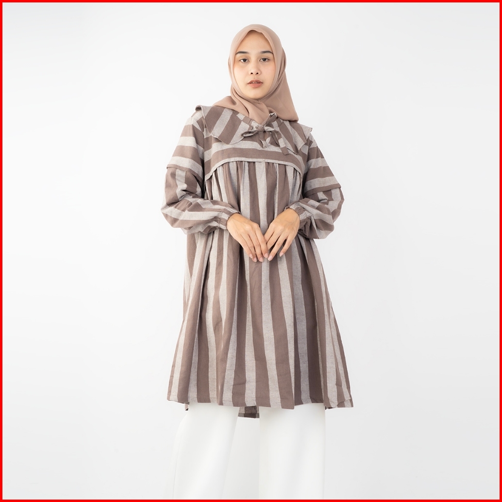 Haymeeidn - Ariana Tunik Stripe Atasan Tunik Salur Bahan Linen