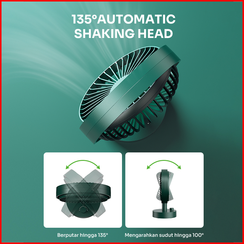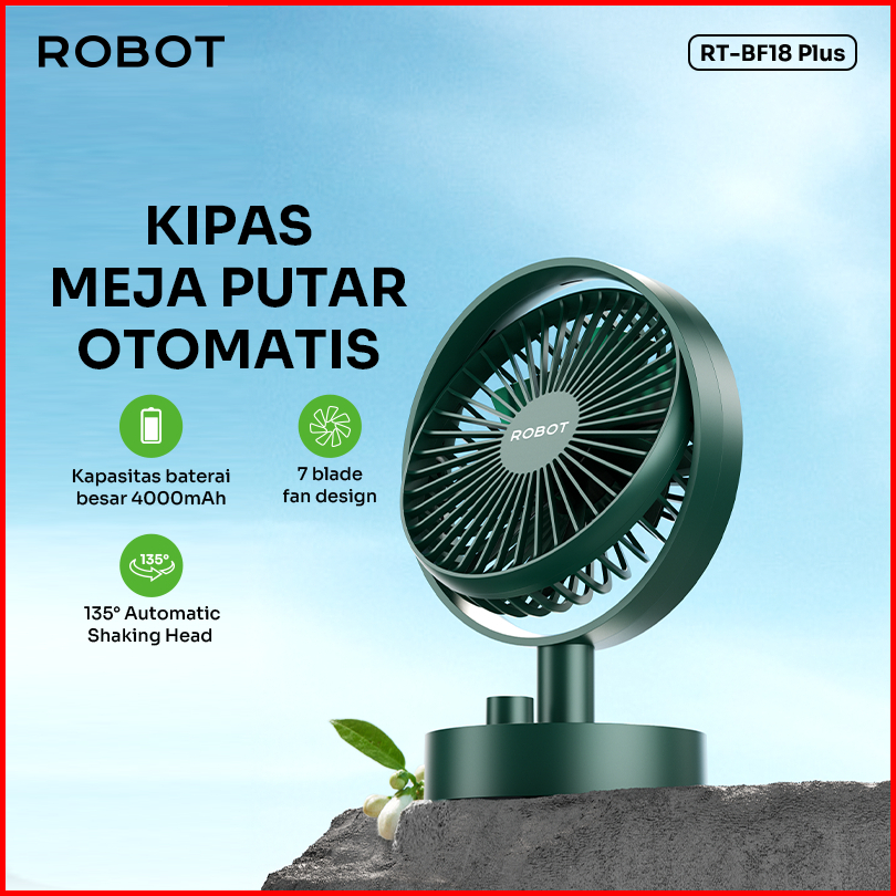 Robot Kipas Angin Meja Putar Rotasi 135 Derajat Otomatis 4000mah Kipas Portable Berdiri Mini Fan Desktop Rt-bf18 Plus Gr