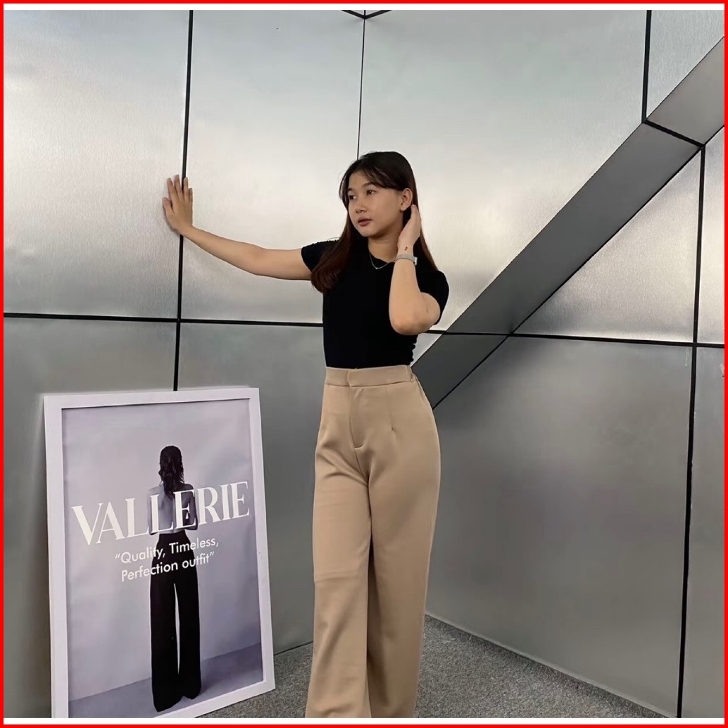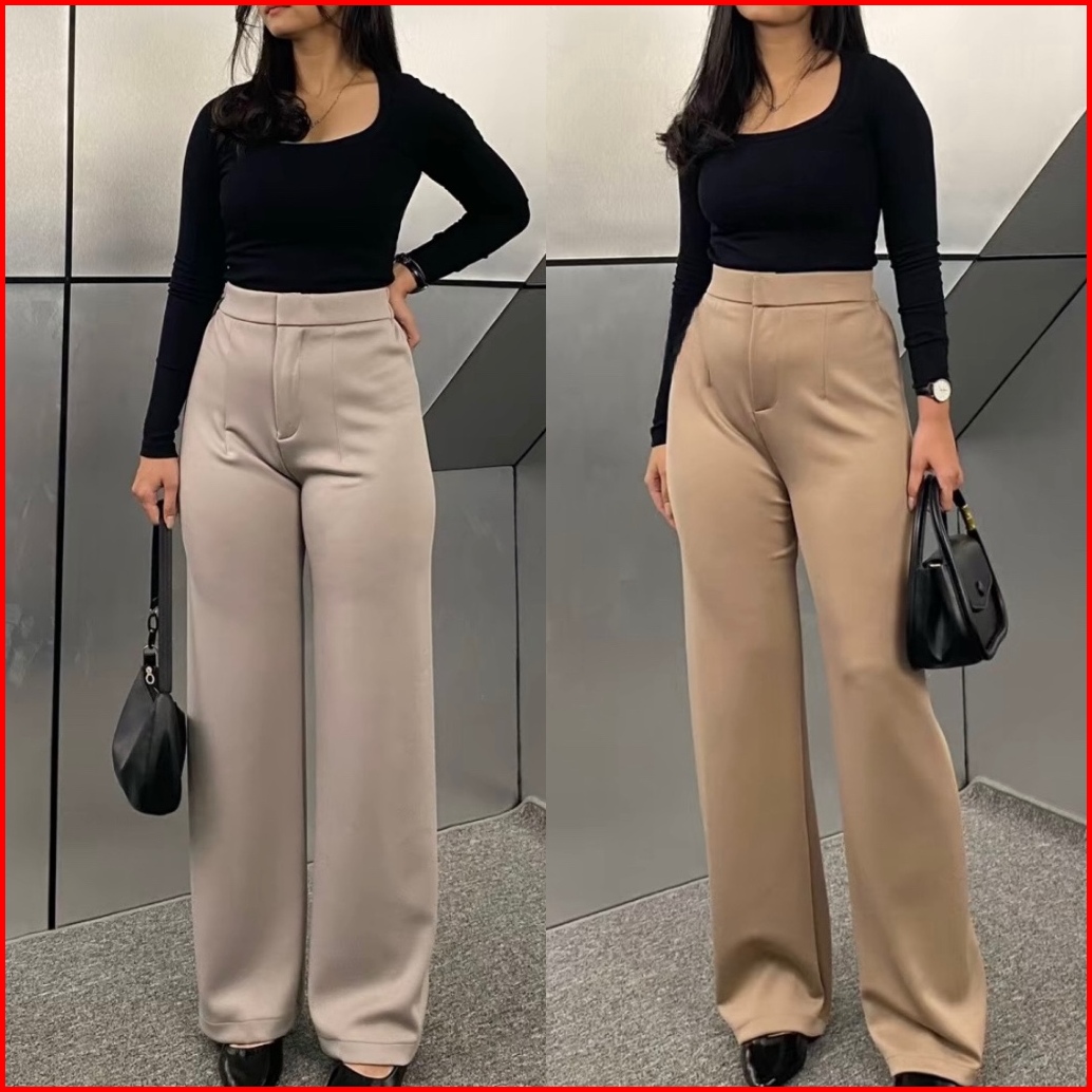 Loose Pants Scuba Celana Anti Kusut Celana Kulot Wanita Pinggang Full Karet Sleting Depan - Celana Wanita Terbaru
