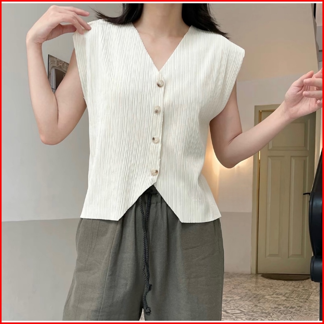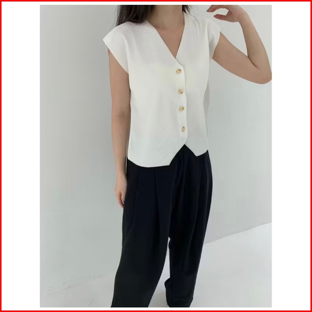 Shea Top Atasan Vest Knit Kancing Sleeveless Wanita - Vest Rompi Wanita - Sleeveless Top Atasan Panjang Outer Wanita Ter