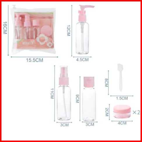 Hm132 Tempat Sabun Cair Shampo Lotion Refill Bottle Travel Pack Set Botol Mini Set 7in1 Organizer