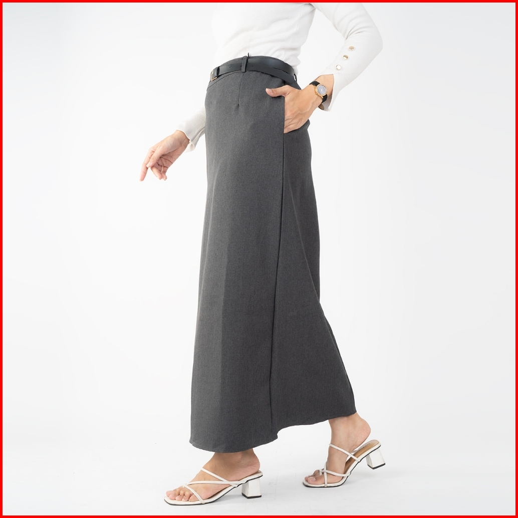 Haymeeidn - Rok Kerja Line A Office Skirt Woman Casual Bahan Semi Woll Twotone