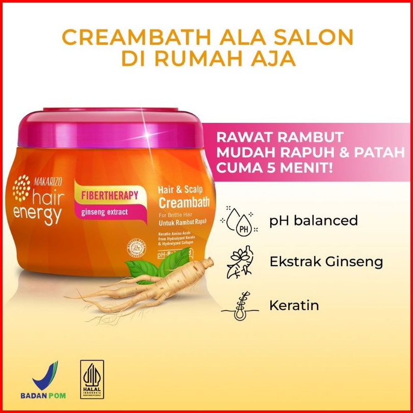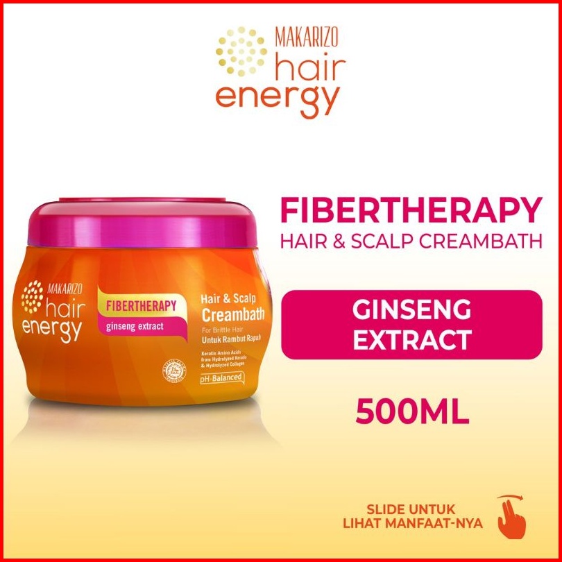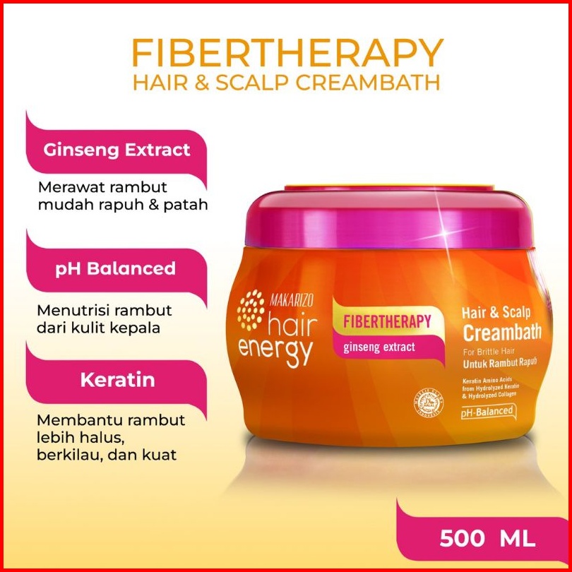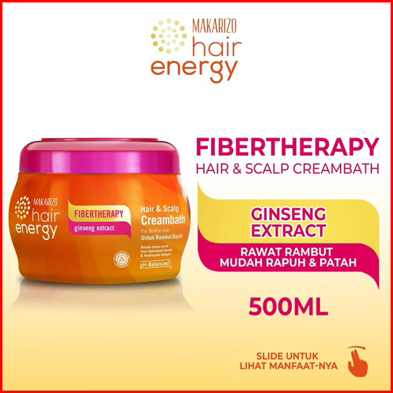 Makarizo Hair Energy Fibertheraphy Creambath Ginseng Olive Kiwi Aloe Melon Royal Jelly Extract 500 Ml Hair Spa Hair Mask