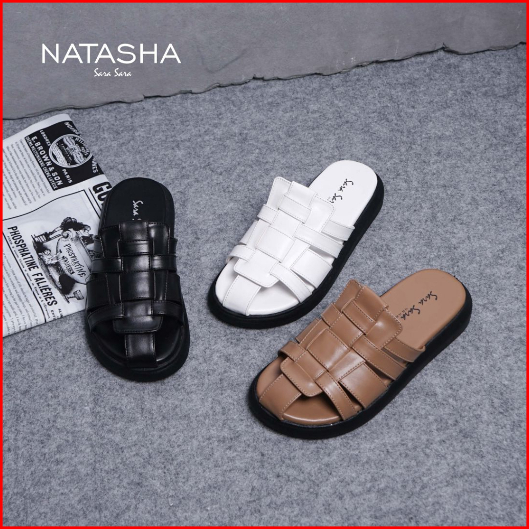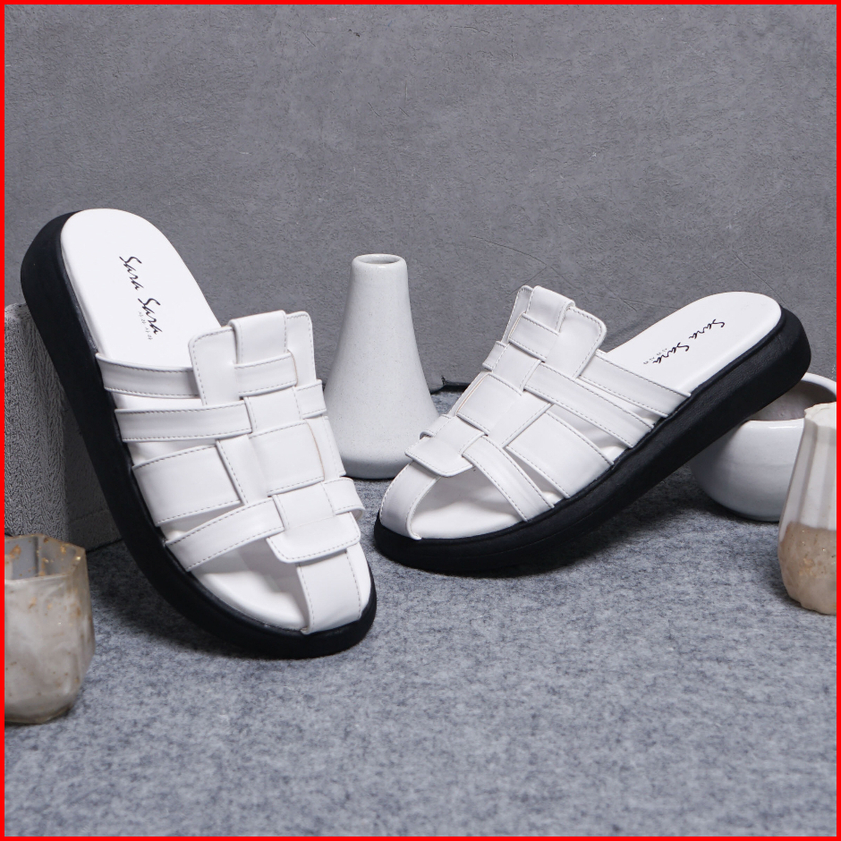 Sara Sara Natasha Black White Sendal Wanita Model Terbaru Sendal Slip On Sendal Flat Yang Empuk Nyaman Dikaki 36-4