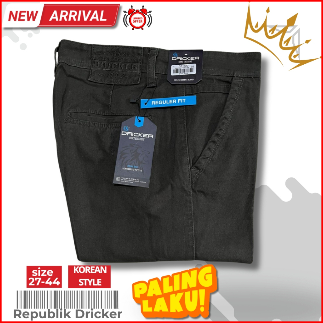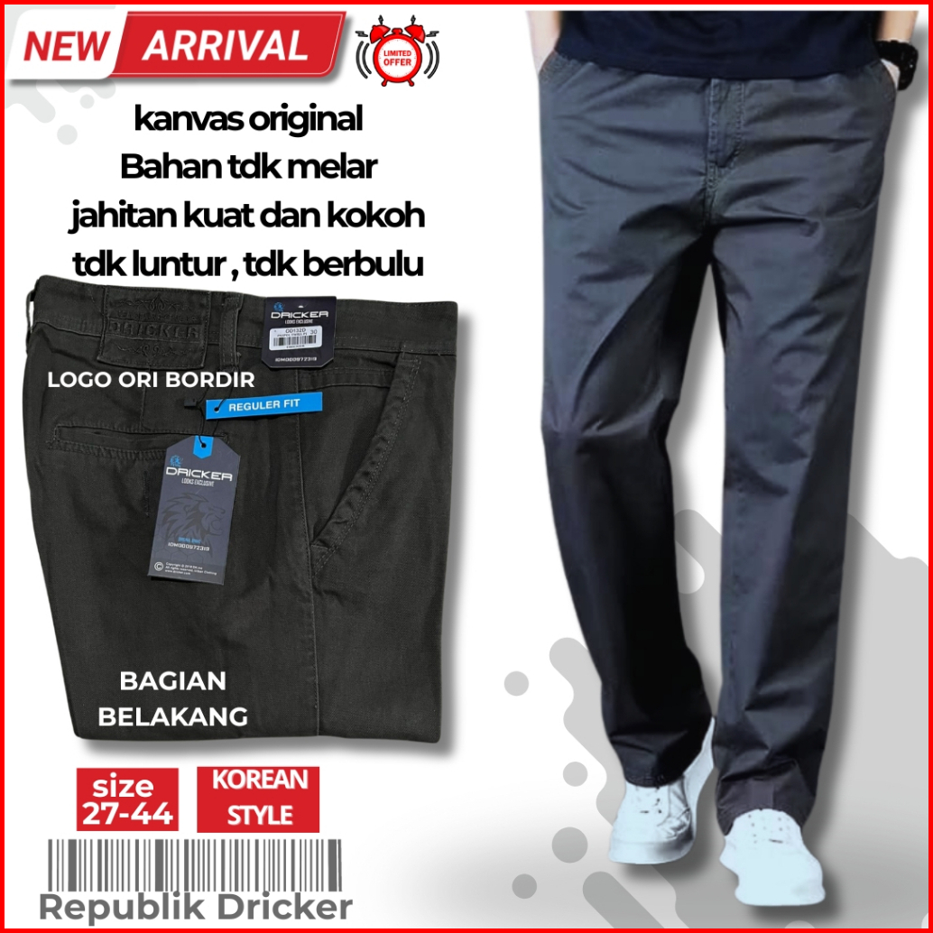 Celana Chinos Panjang Pria Katun Kanvas Original Reguler Standar 27 - 44 Jumbo Hitam Abu Crem Coklat