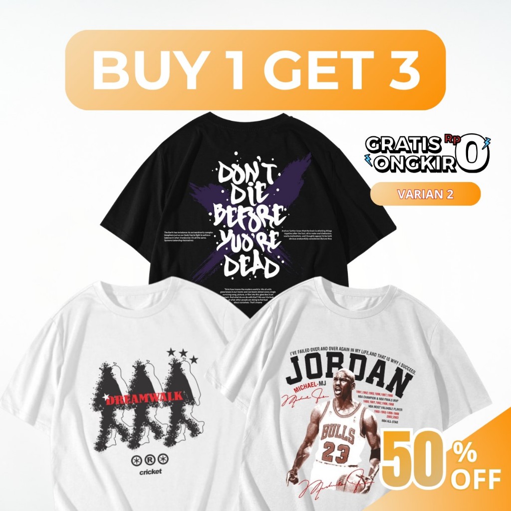 Kaos Distro Motif 3Pcs Unisex Bahan Full Katun 30S Grosir