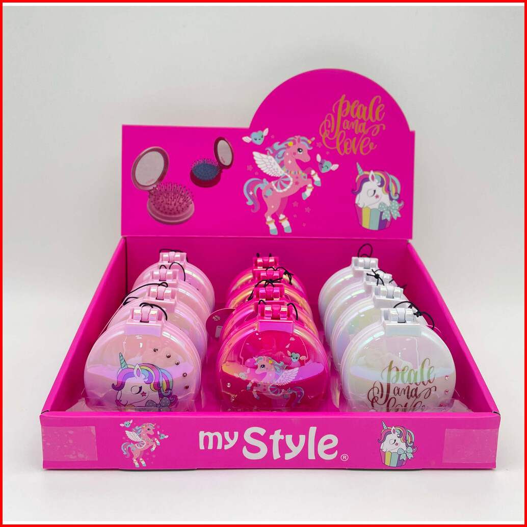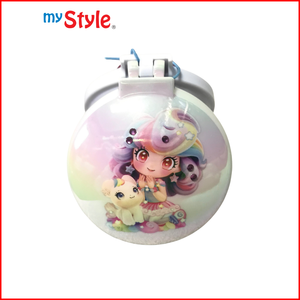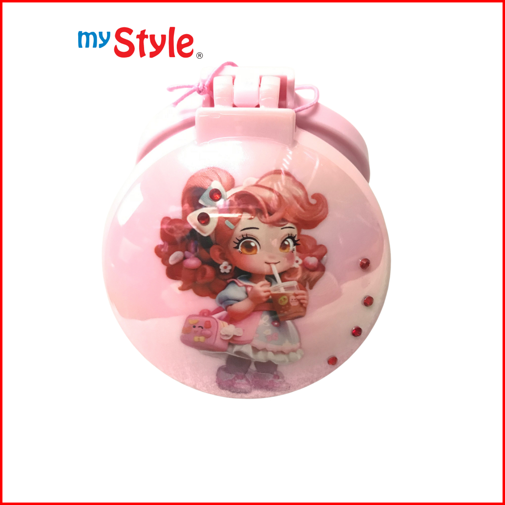 My Style Tm 1202 Folding Hairbrush With Mirror. Sisir Lipat Bulat Dengan Cermin Motif Lucu.