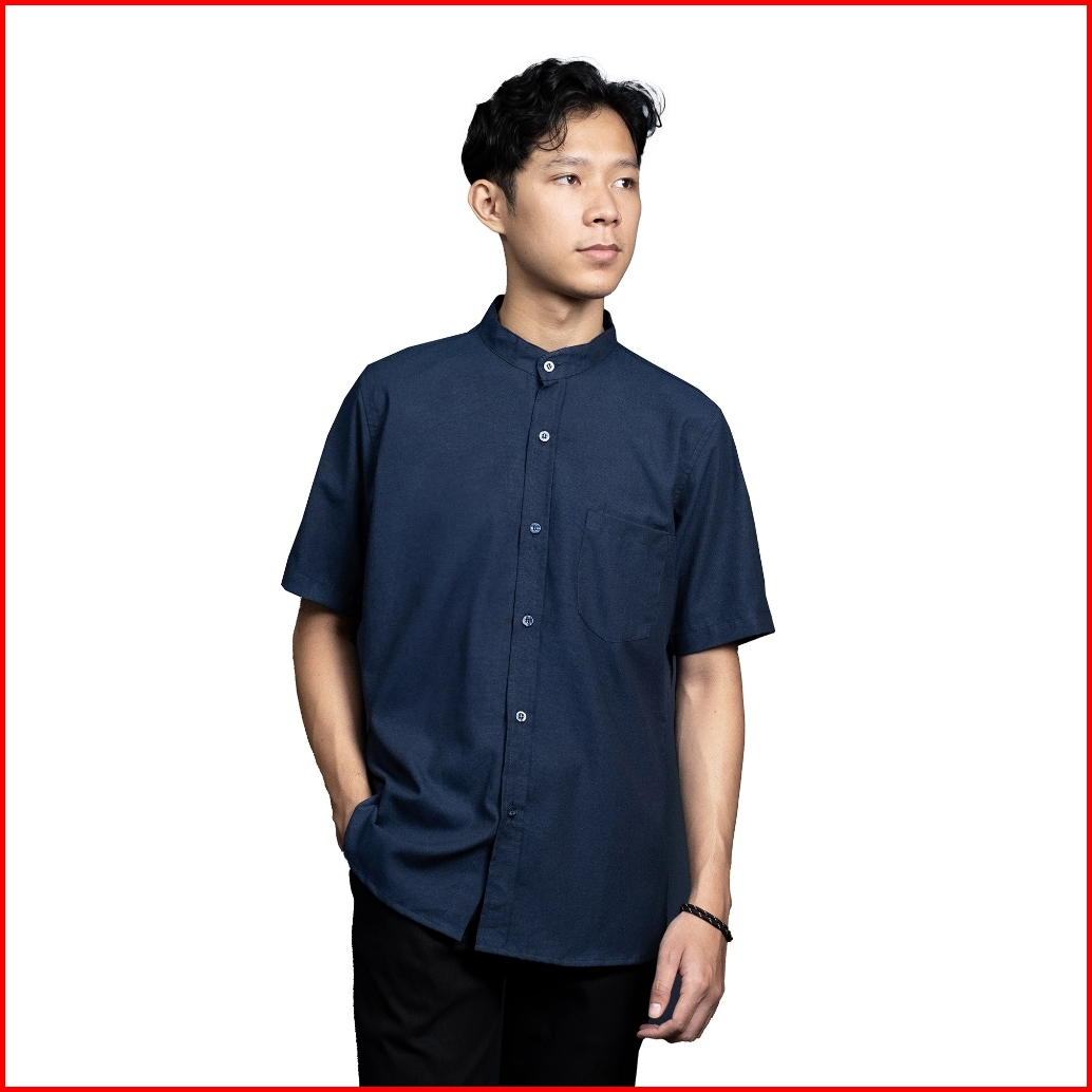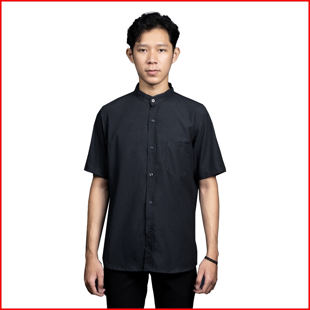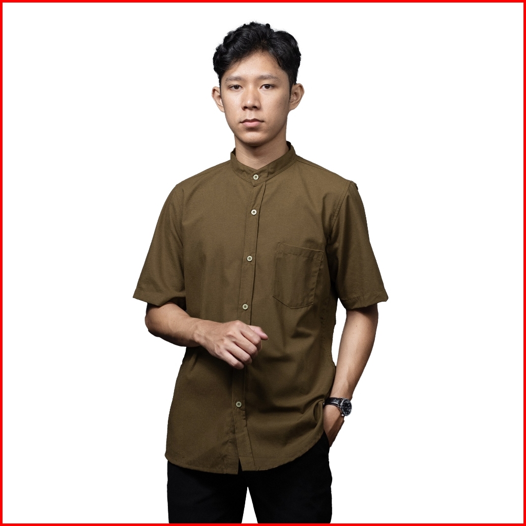 Fatto A Mano Kemeja Koko Lengan Pendek Pria Polos Amarante