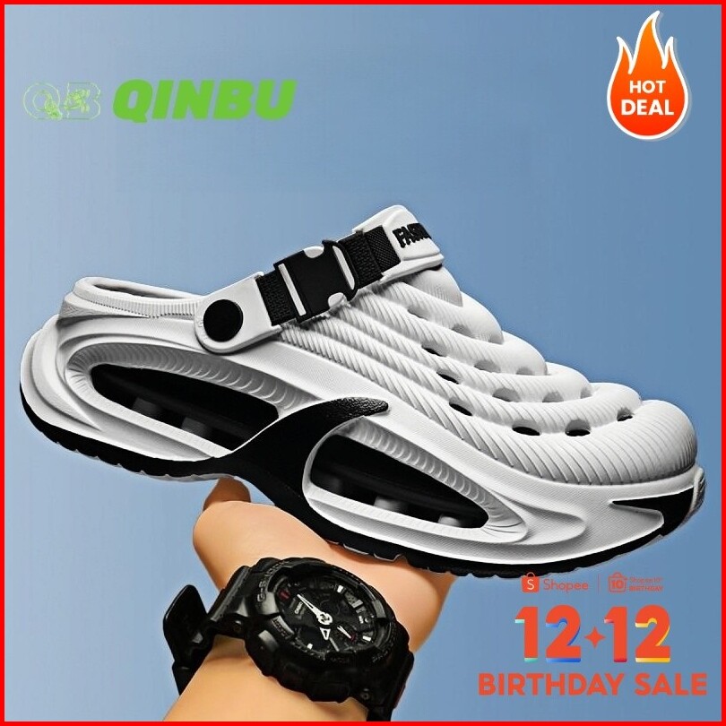 Qinbu Sepatu Sandal Pria Tahan Air Anti Slip Ringan Bernapas Tinggi 5cm Desain Fashion Terbaru Cross