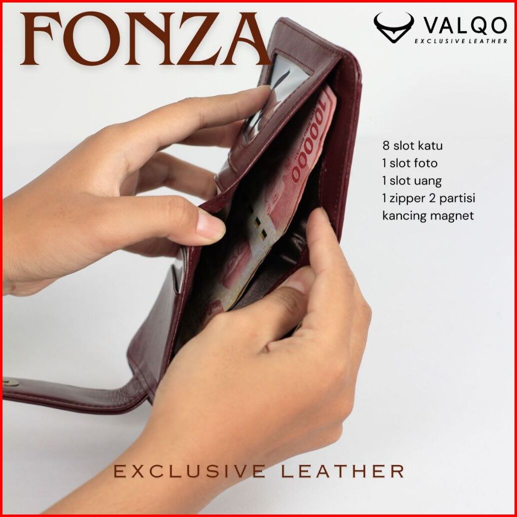 Valqo Fonza Dompet Kulit Sapi Wanita Kartu Foto Koin Slot Resleting Dompet Wanita Dompet Kecil Dompet Pendek