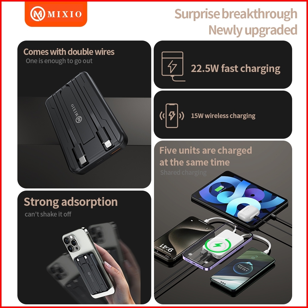 Mixio Mp-06 Wireless Power Bank 10000mah Magnetic Magsafe 20w Fast Charging Type C Pd Build In Kabel