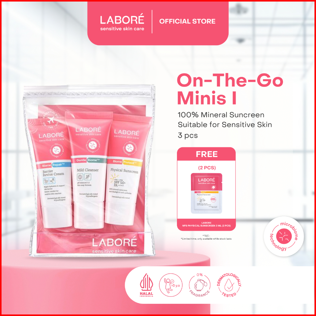 Labore Sensitive Skin Care On-the-go Minis - Travel Size Sensitive Skin Care Kit - Paket Mild Cleanser 15ml Barrier Revi