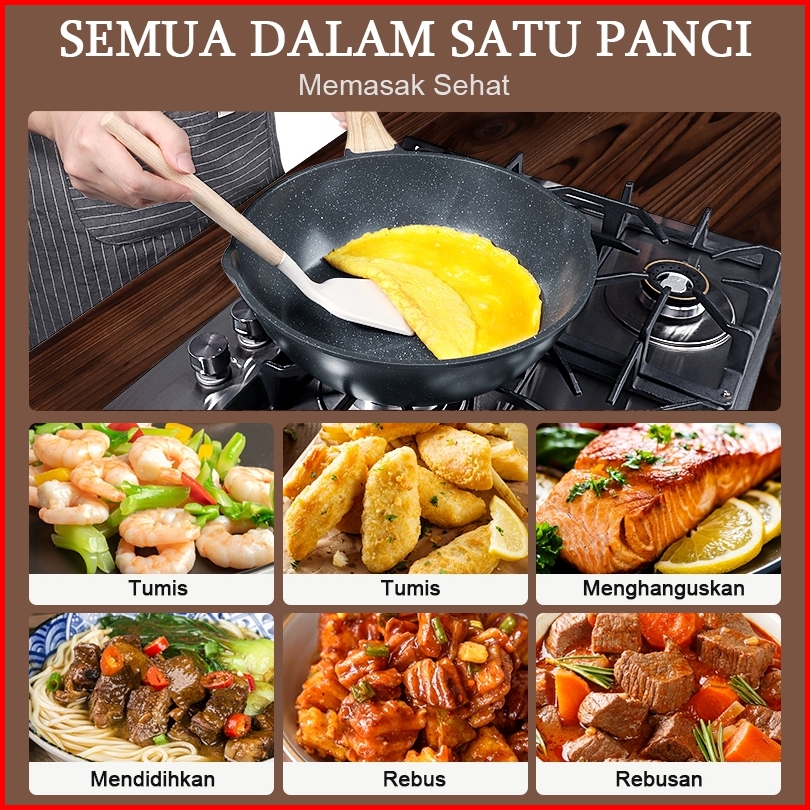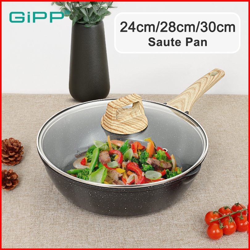 Gipp Deep Wok Pan Grey 24cm 28cm 30cm Fry Pan Anti Lengket Marble Coating Bebas Pfas Ptfe Pfoa