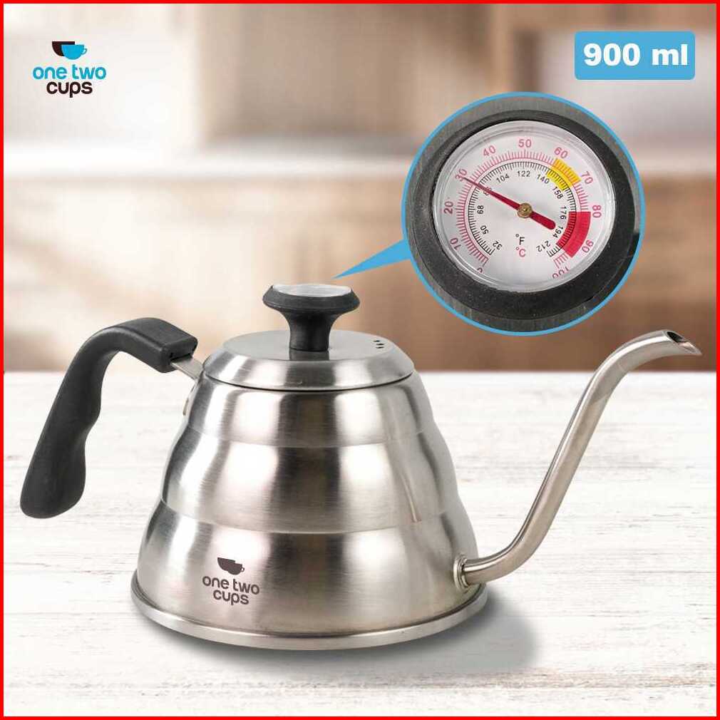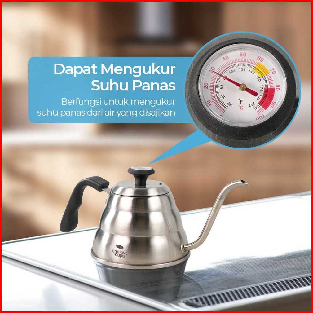 One Two Cups Teko Kopi Leher Angsa Pour Over Kettle Thermometer 900ml - Lzp-8003