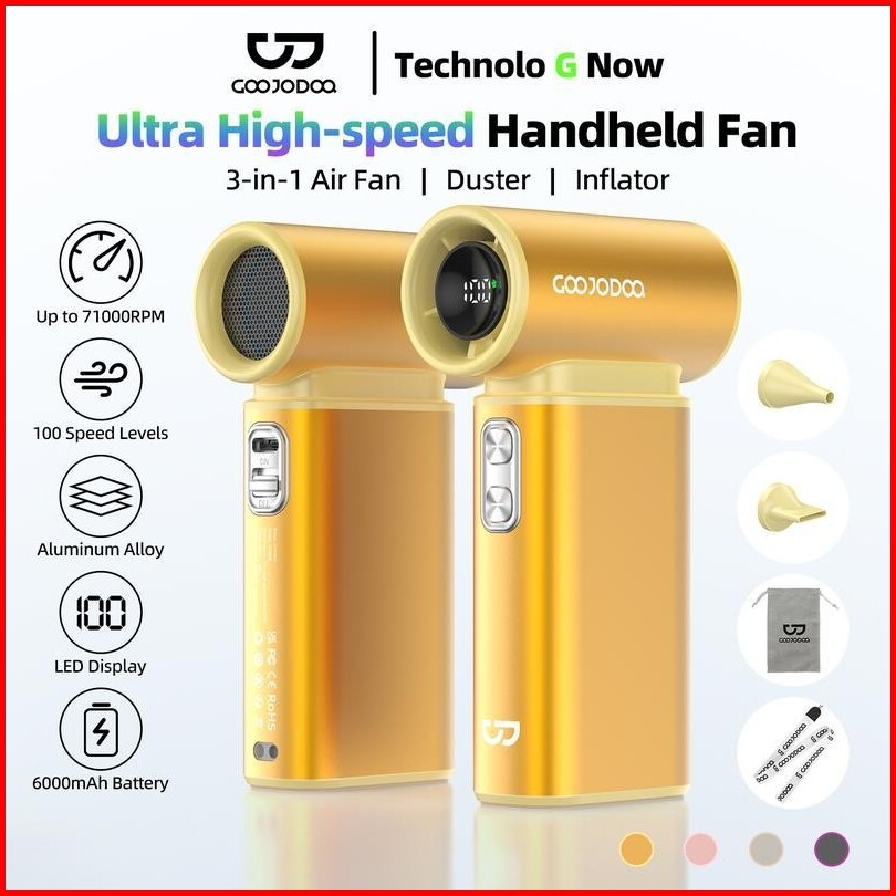 Goojodoq 6000mah 23m S Kipas Turbo Kecepatan Super Dengan Layar Led Dua Nosel Angin Tiga Kipas Mini Dalam Satu