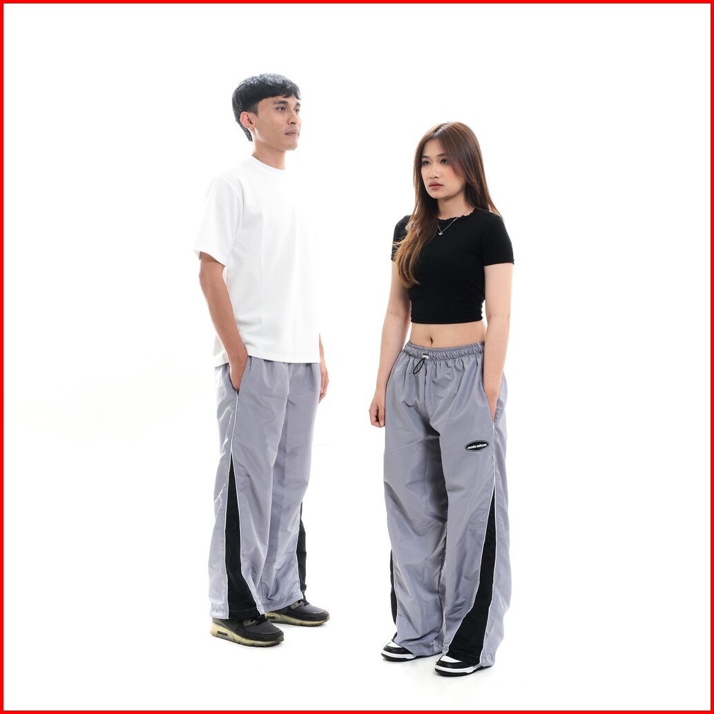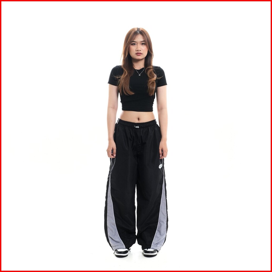 Unbroken Eclipse Trackpants Midnight Black Panel Trousers Streetwear Comfort - Celana Baggy Skena Wanita Gombrong