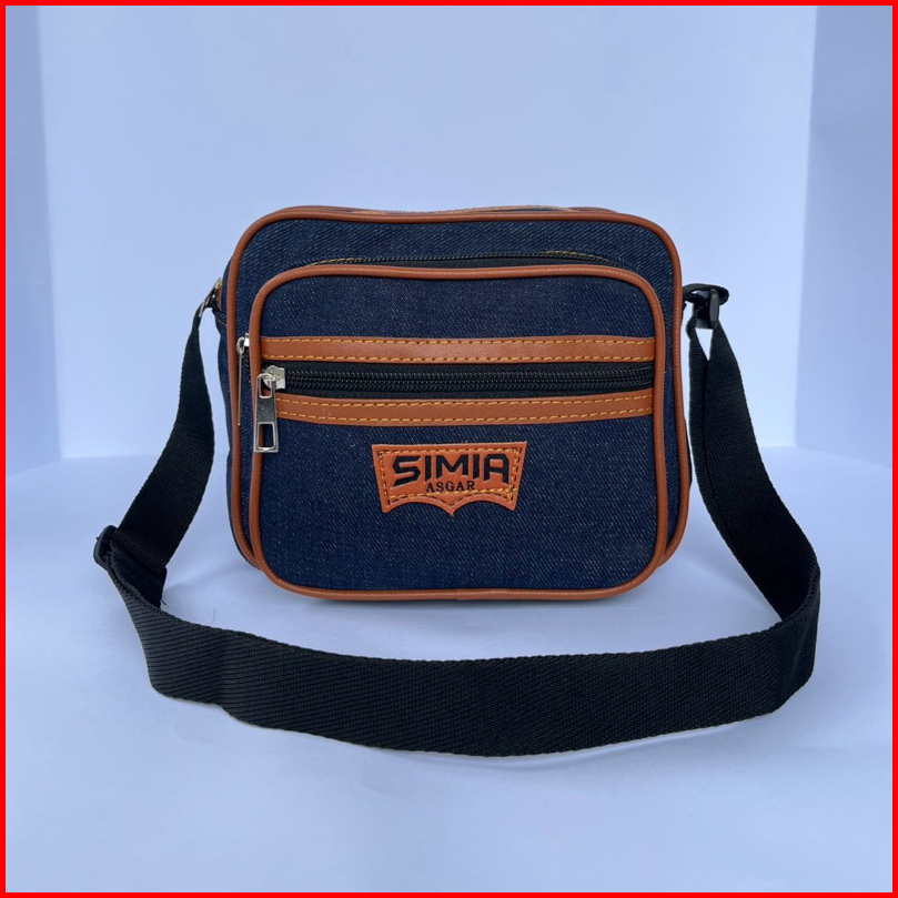 Tas Mini Selempang 3 Resleting Bahan Denim Kulit Sintetis