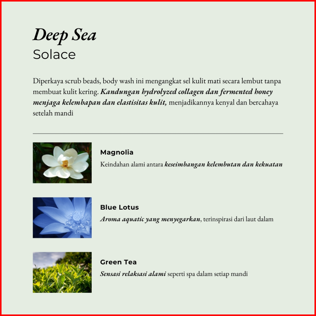 Your Esscentials - Solace Deep Sea Body Wash 500ml - Sabun Mandi Dengan Butiran Scrub Lembut Hydrolyzed Collagen Dan Fer
