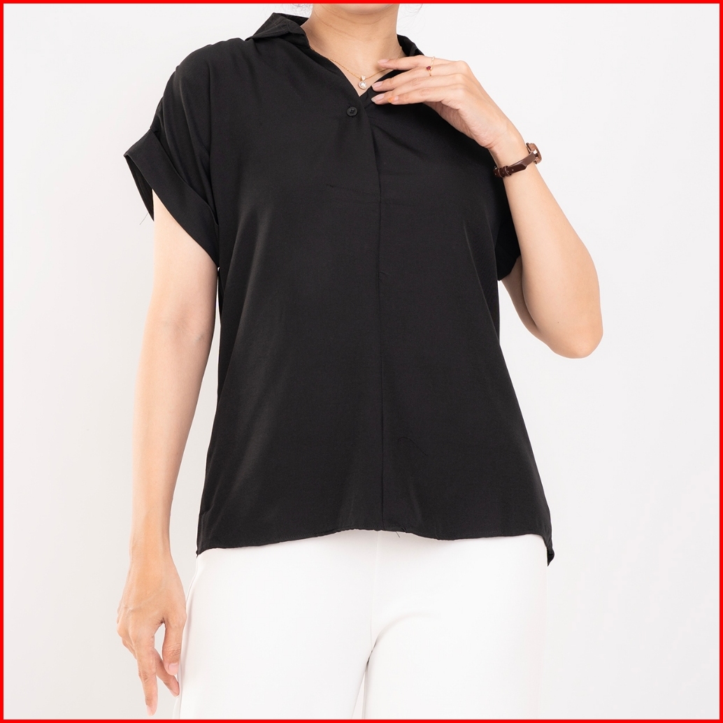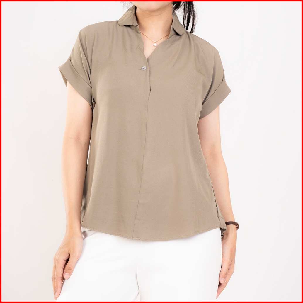 Haymeeidn Blouse Casual Wanita Twill Rayon Spandex Polos Premium Lengan Pendek