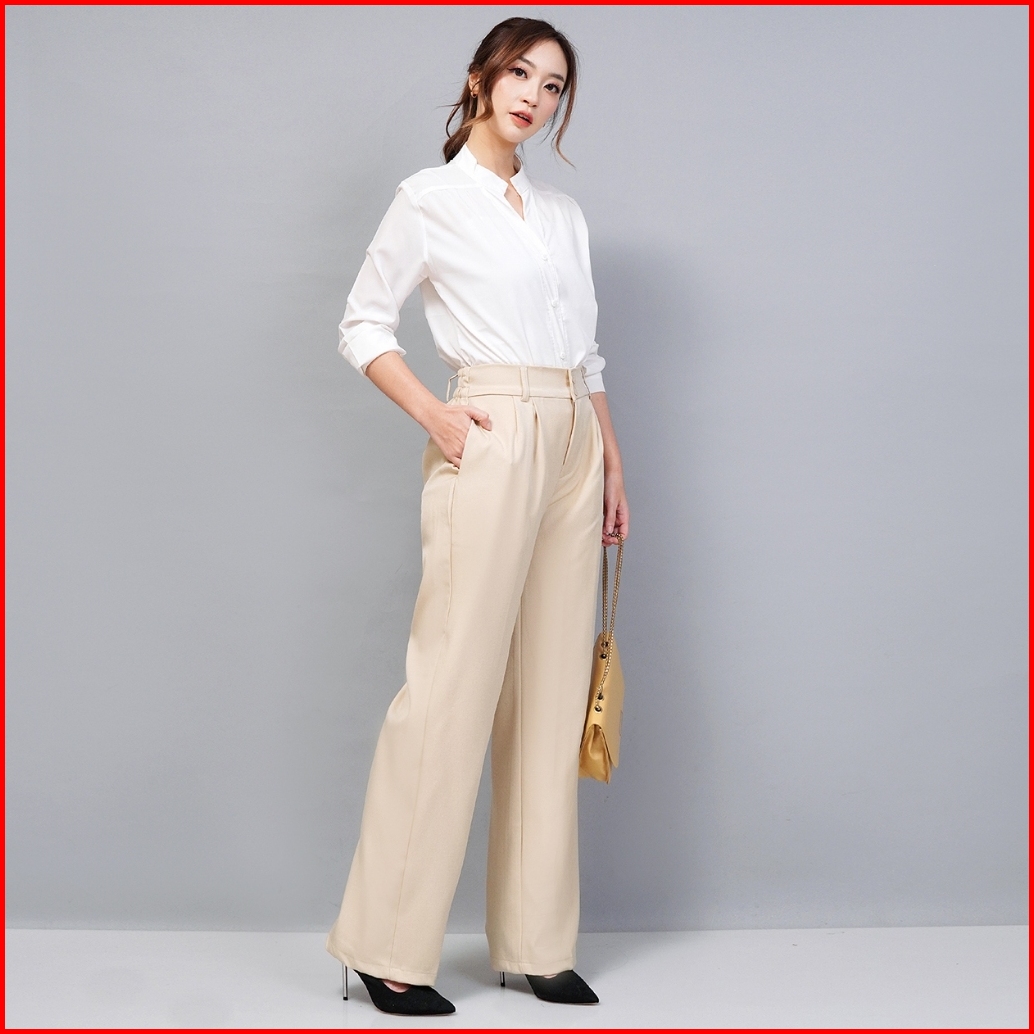 Haymeeidn - Loro Pants Celana Panjang Wanita Highwaist Pants Basic Korean Long Trousers
