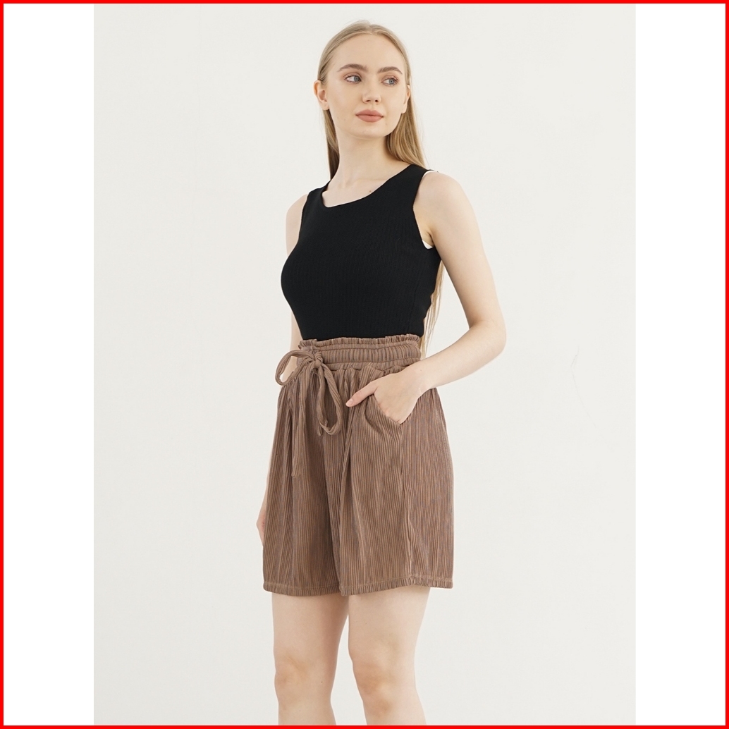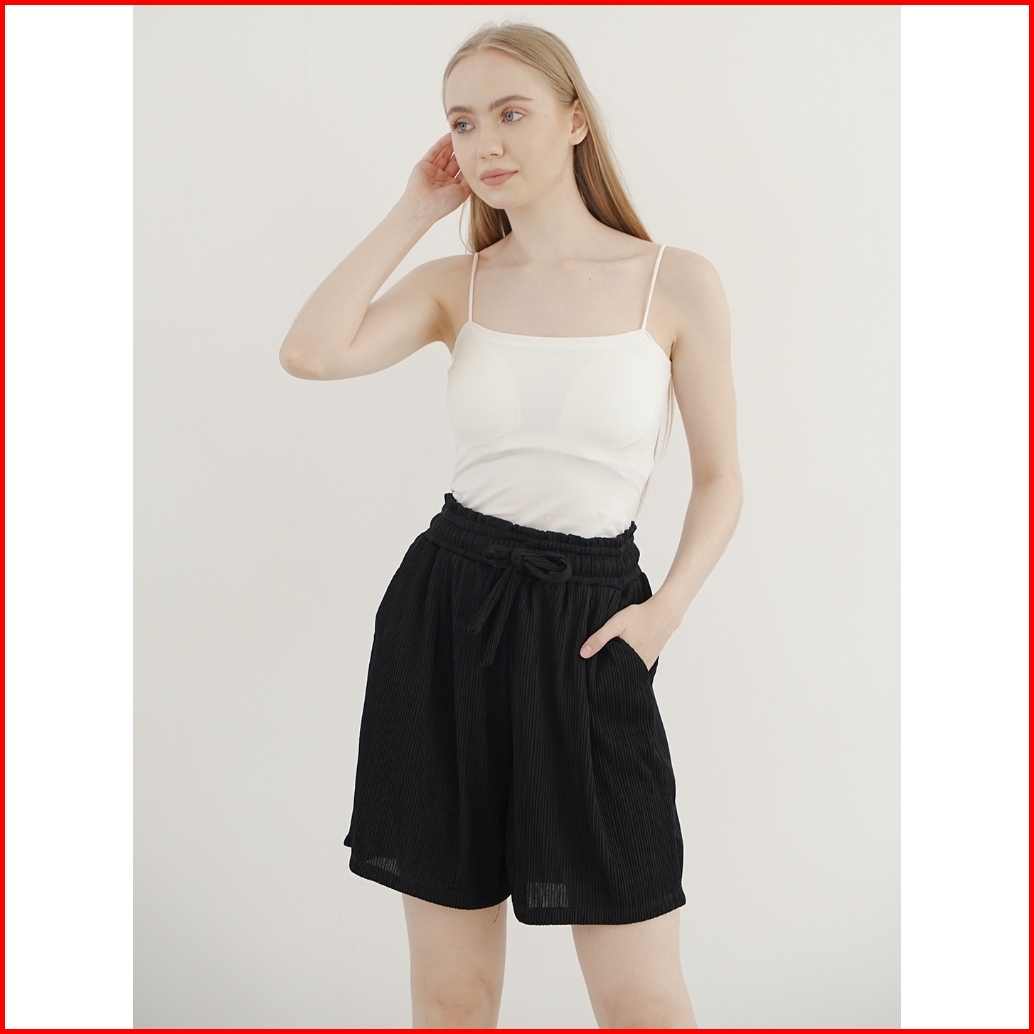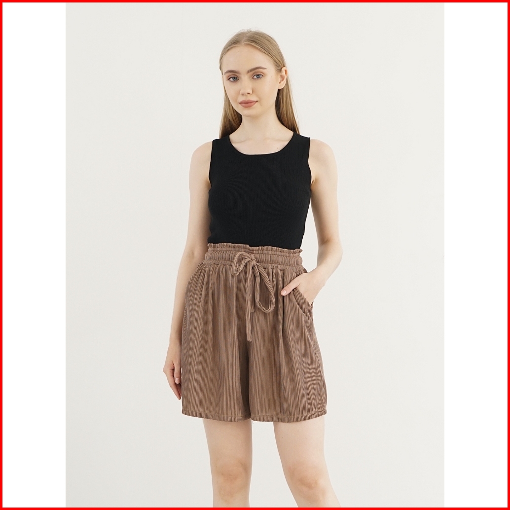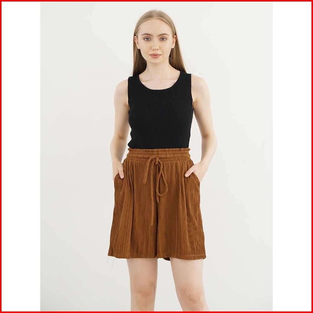 Haymeeidn - Pleats Relax Pants Celana Pendek Wanita Short Pants Celana Pendek Bahan Helio