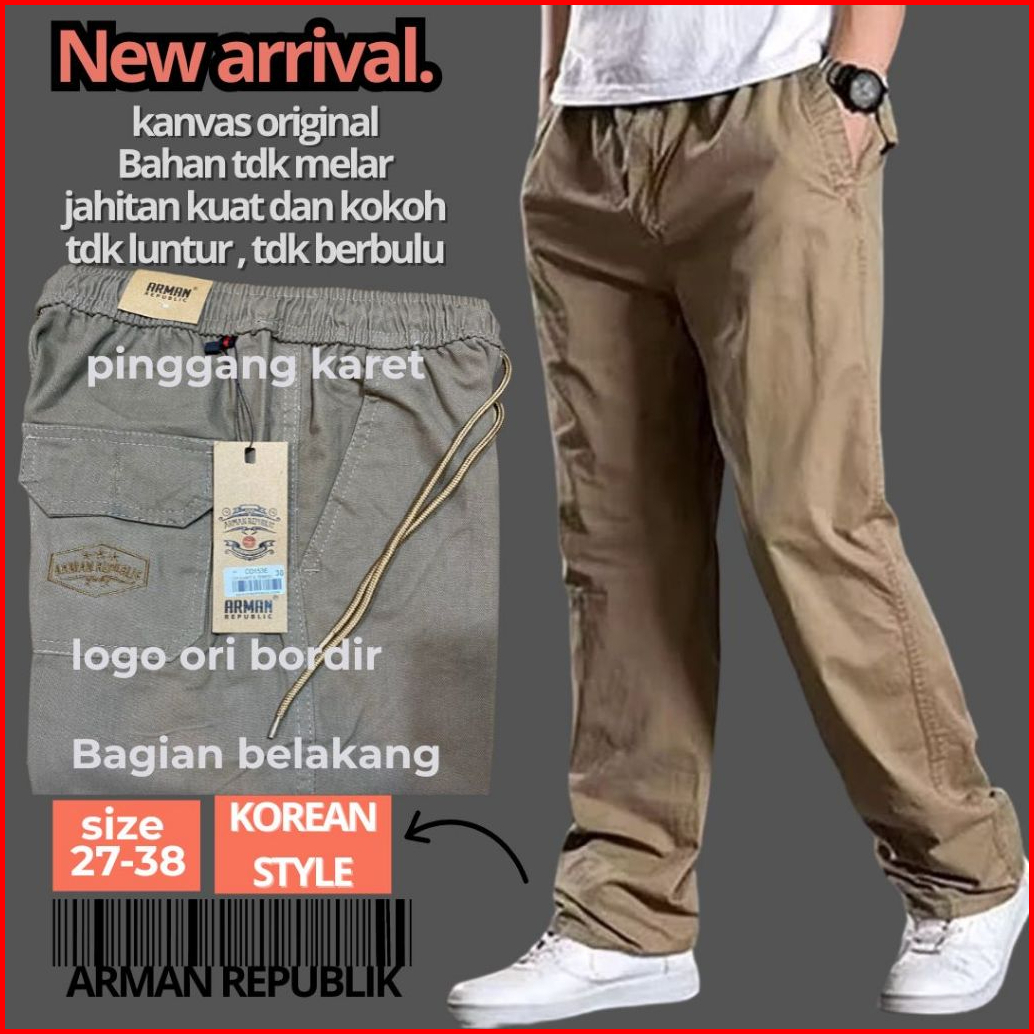 Arm Celana Pria Panjang Skena Baggy Pants Bahan Canvas Tidak Melar Korean Style Gombrong Longgar