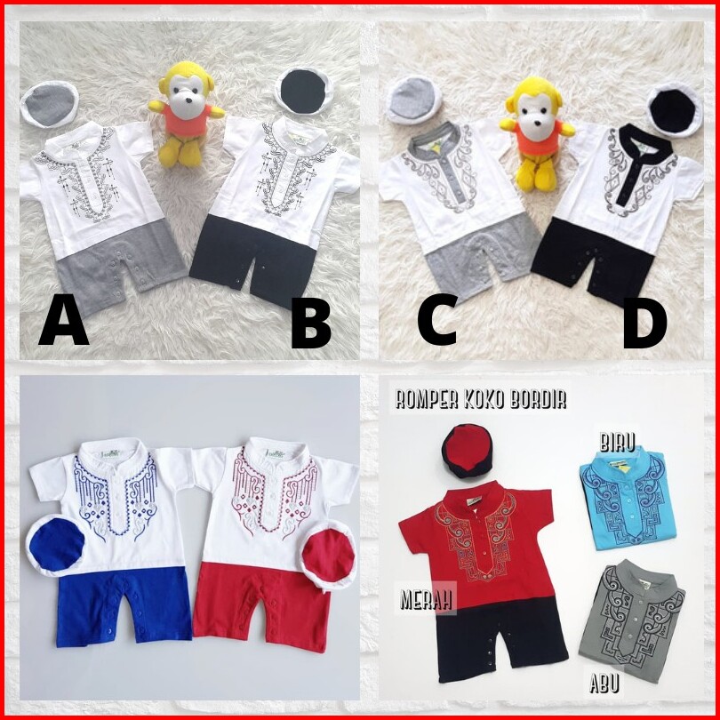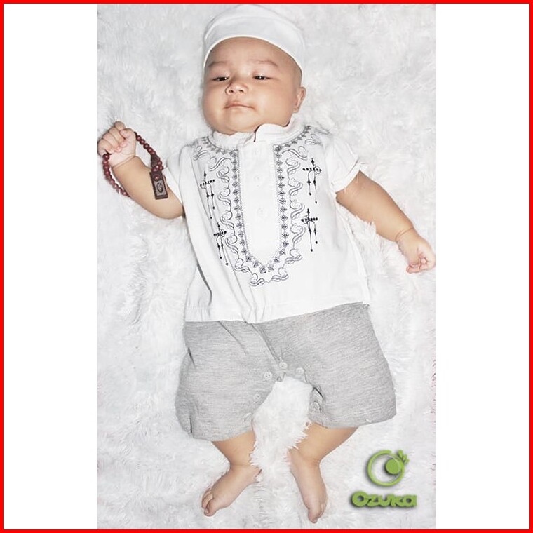 Baju Romper Jumper Koko Bayi Laki-laki Ozuka Aqiqah Set Peci
