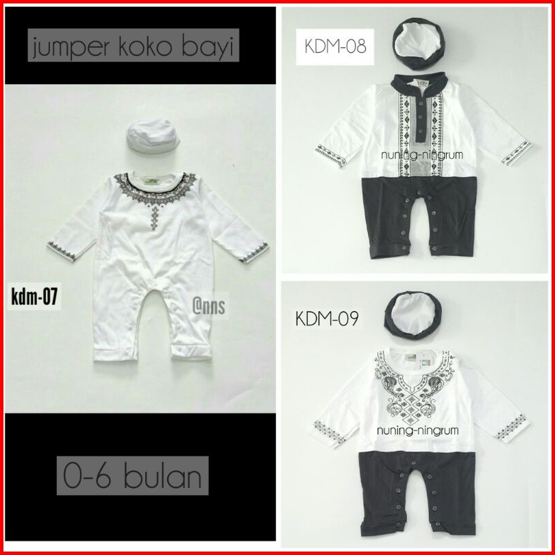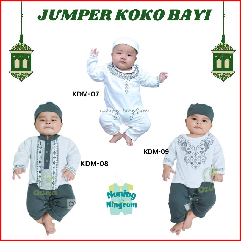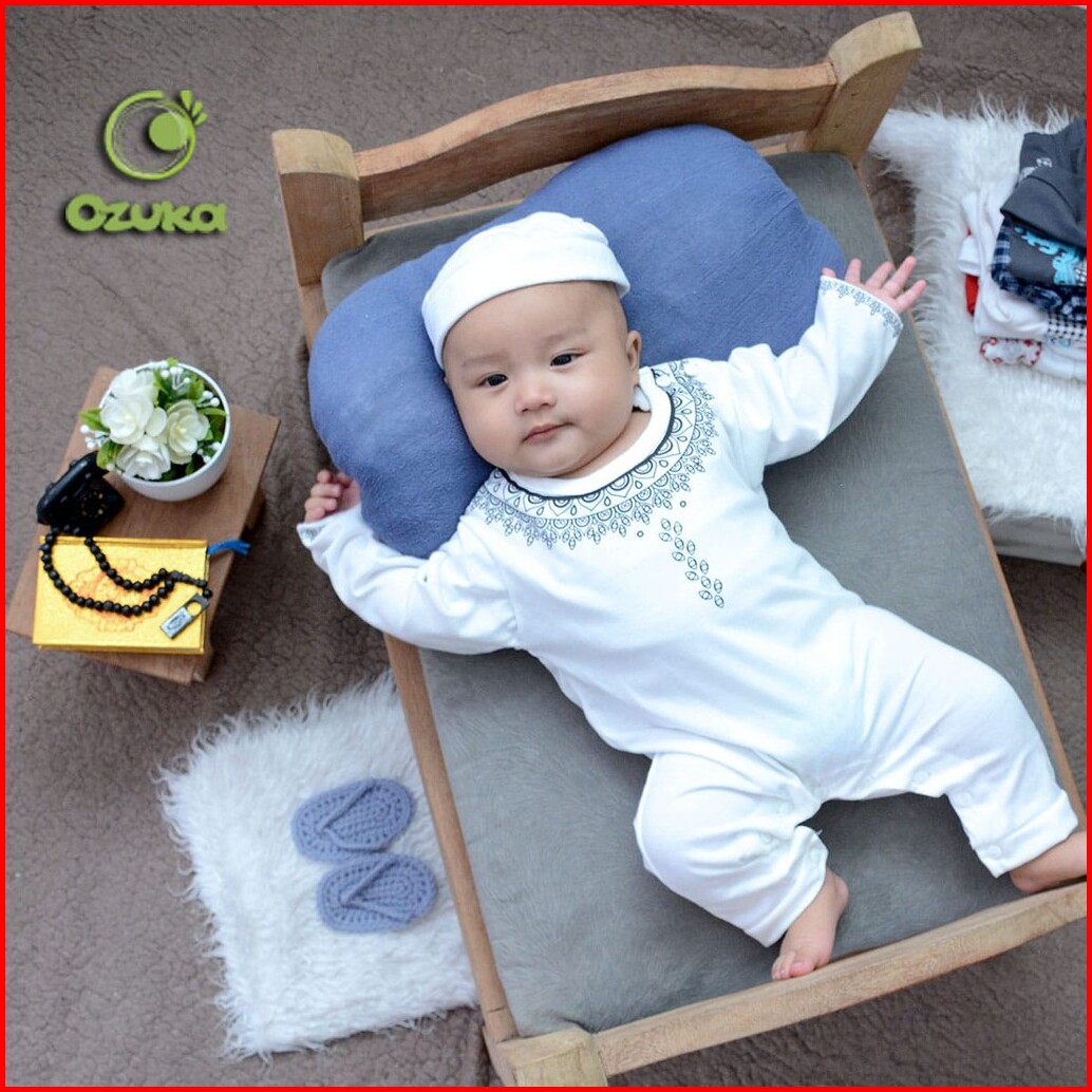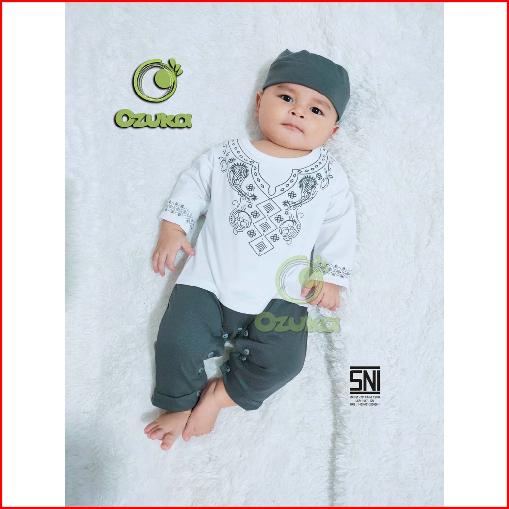 Ozuka Baju Koko Bayi Laki-laki Muslim Aqiqah Kdm07 0-6 Bulan Set Peci Jumper Lengan Panjang
