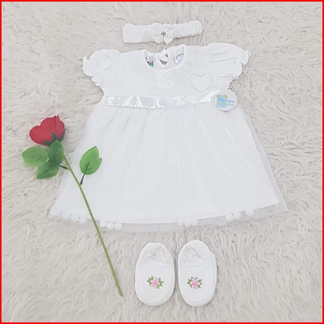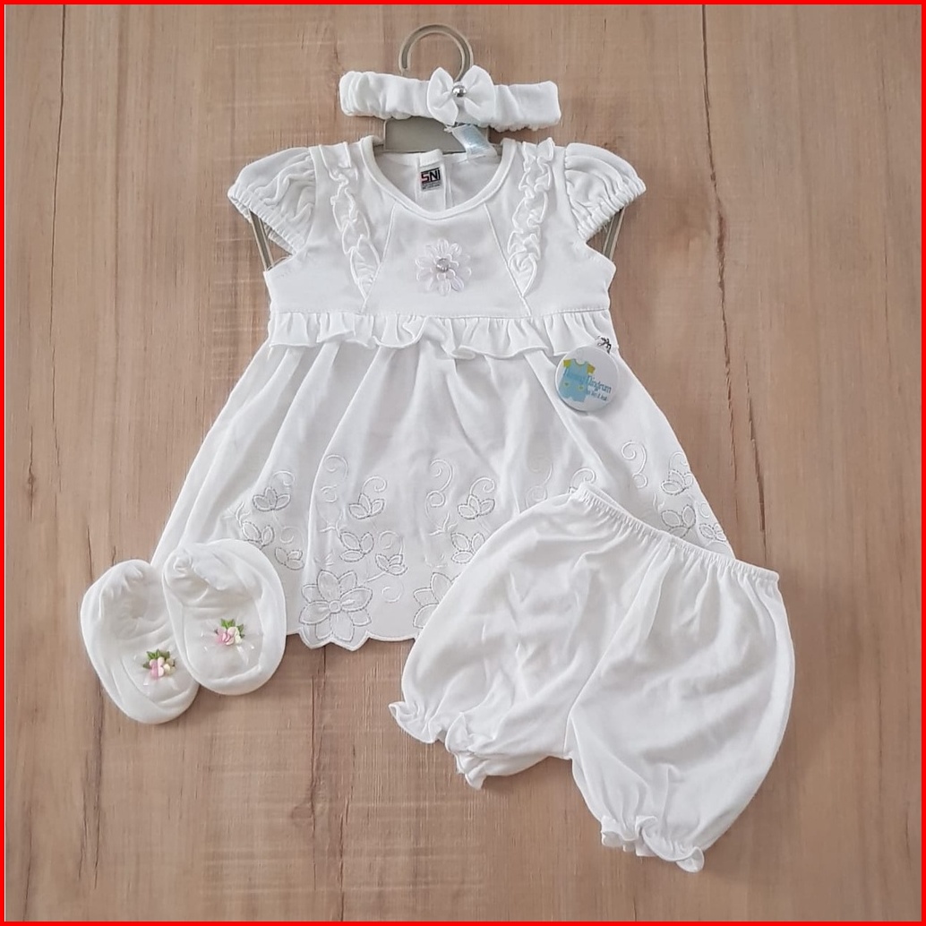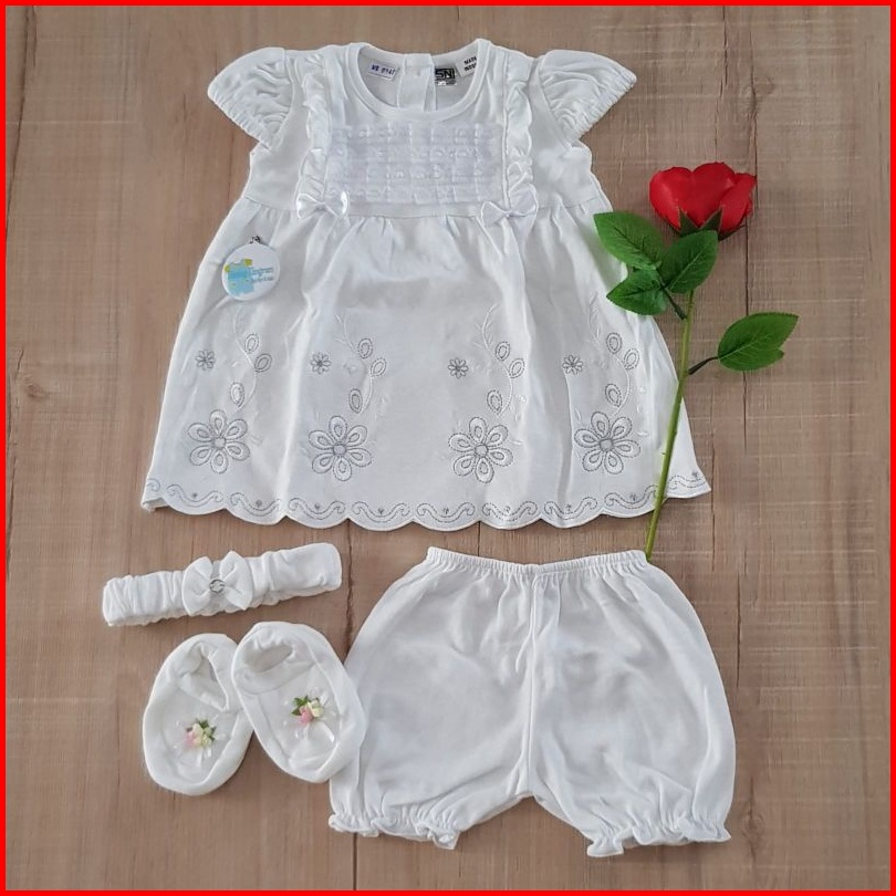 Dress Newborn Aqiqah Baptis Baju Bayi Perempuan 1 Set Putih