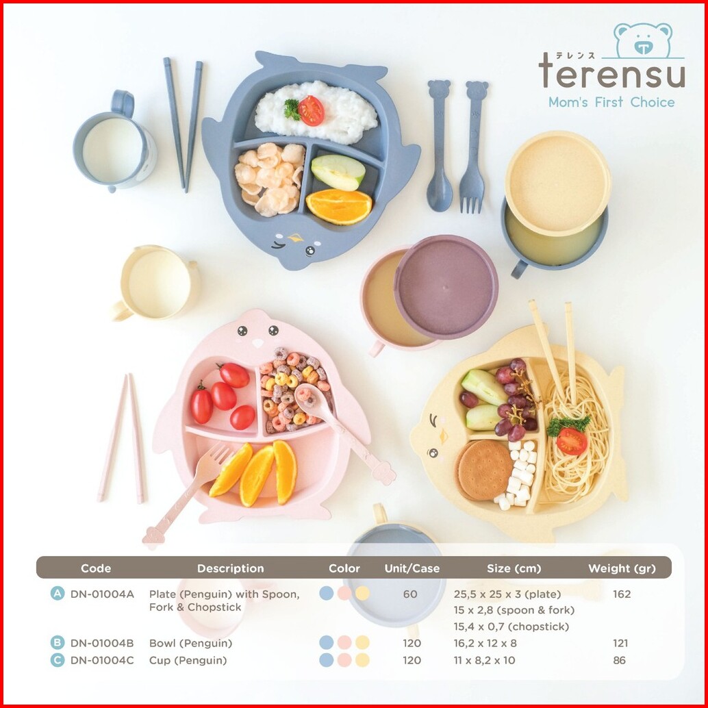 Terensu Piring Makan Anak Sendok Garpu Sumpit Motif Pinguin Set Perlengkapan Makan