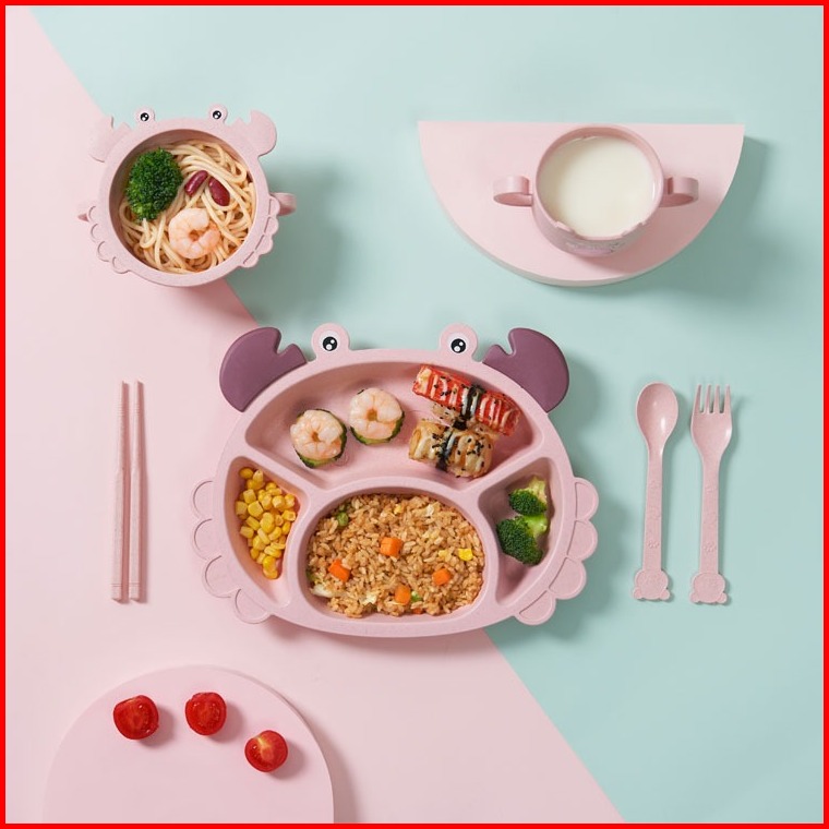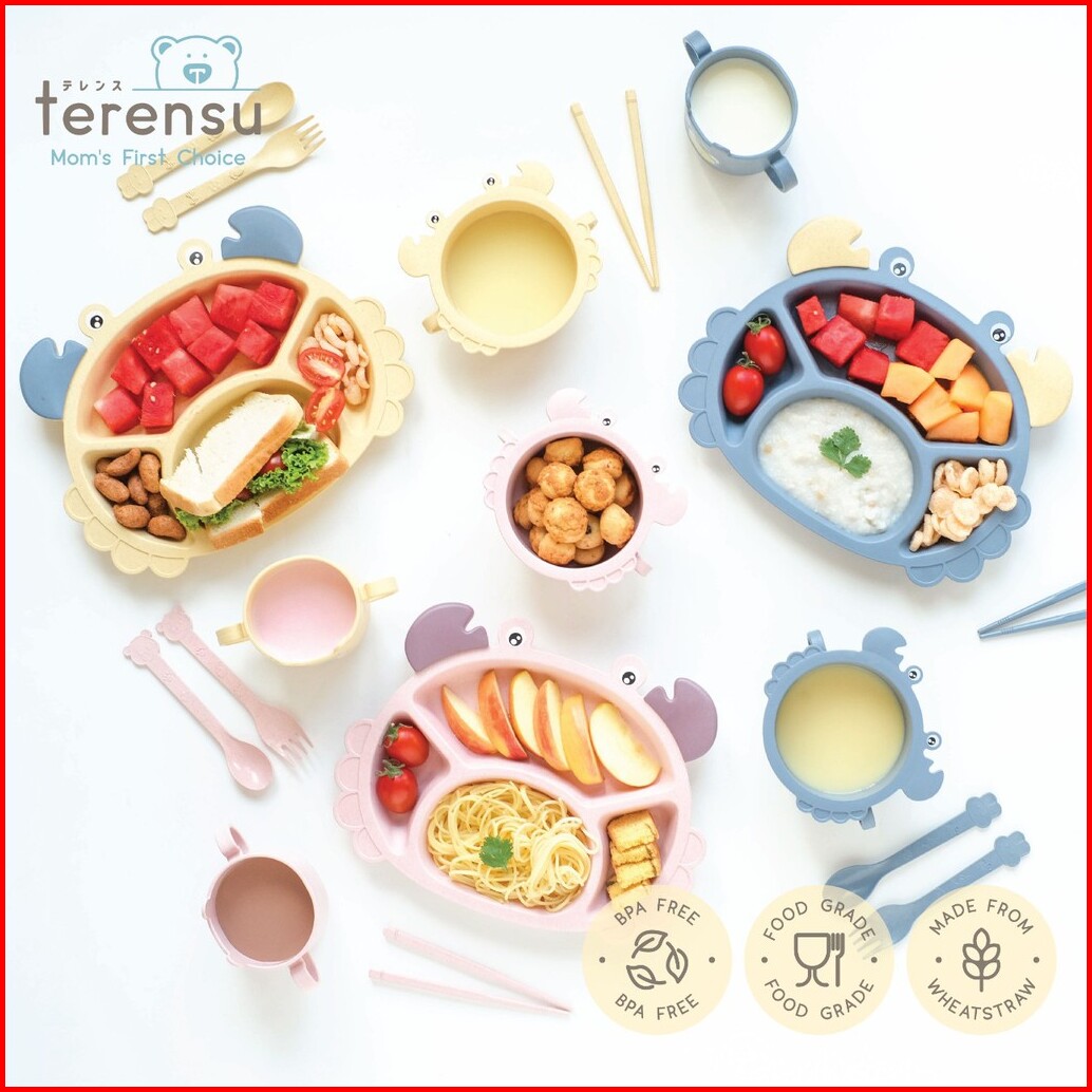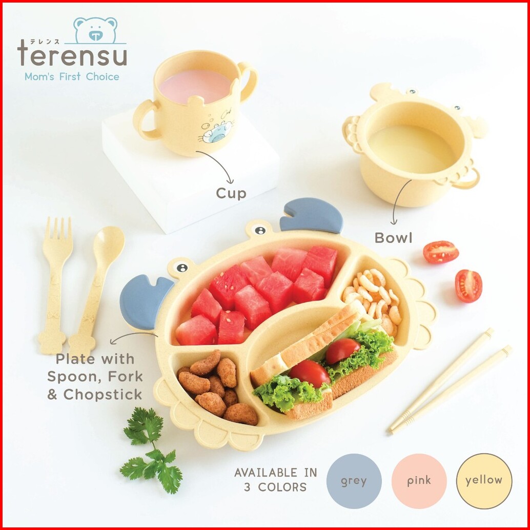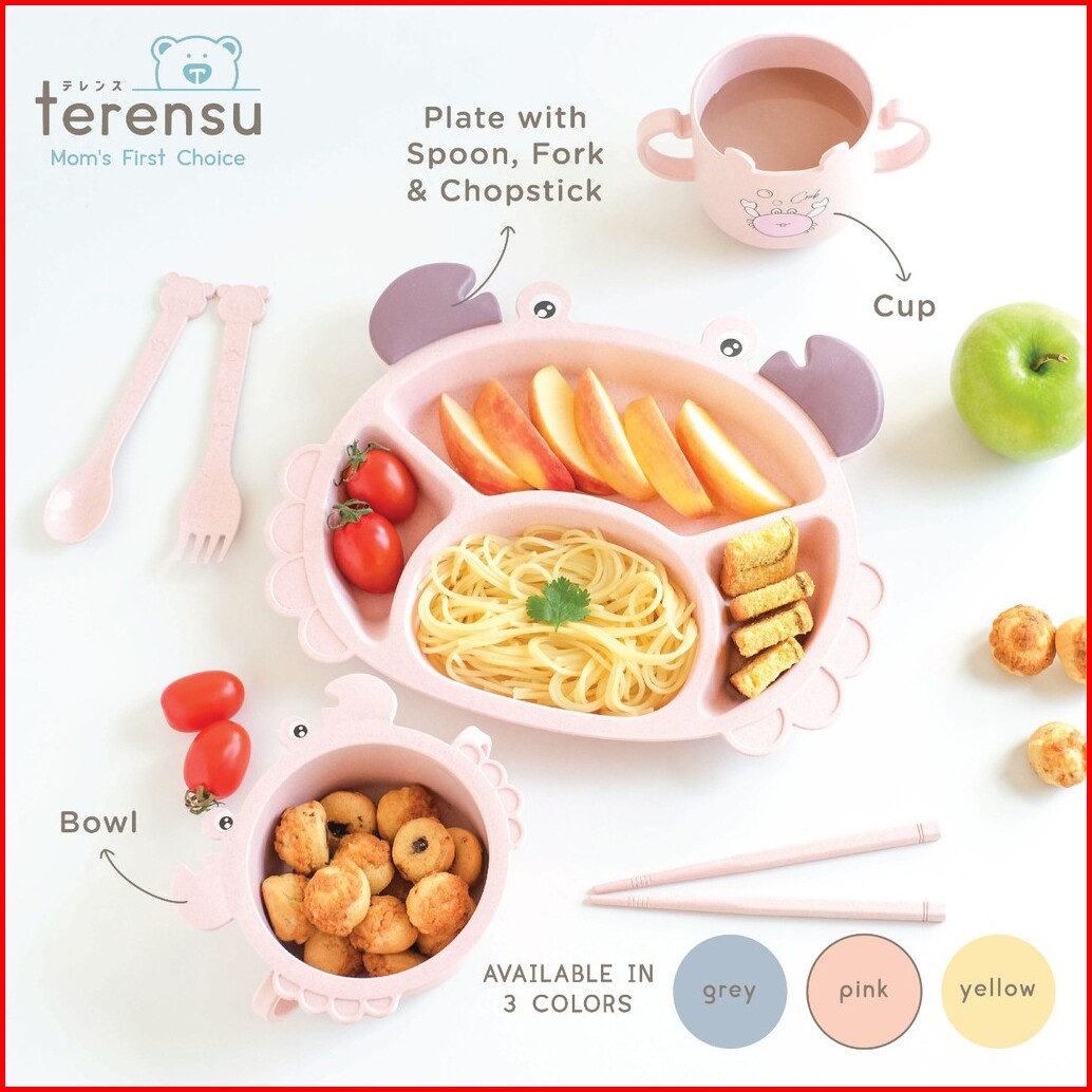 Terensu Satu Set Alat Makan Anak Sekat Set 6 In 1 Piring Mangkok Gelas Sendok Garpu Sumpit
