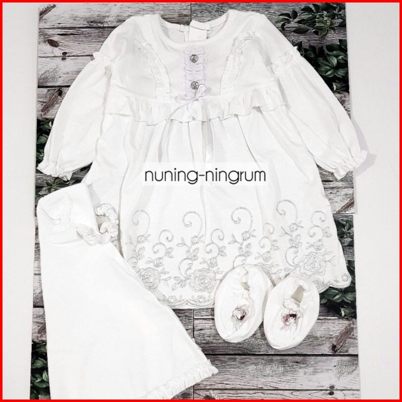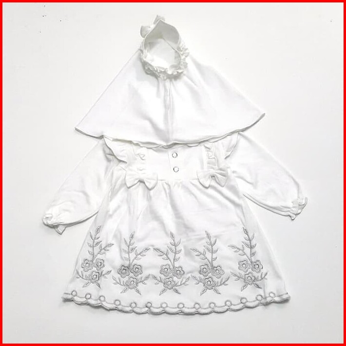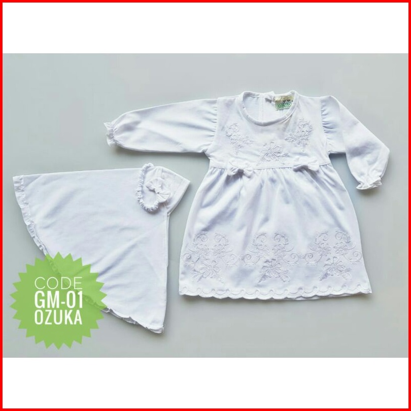 Baju Muslim Gamis Aqiqah Bayi Perempuan Newborn Putih 0-4 Bulan