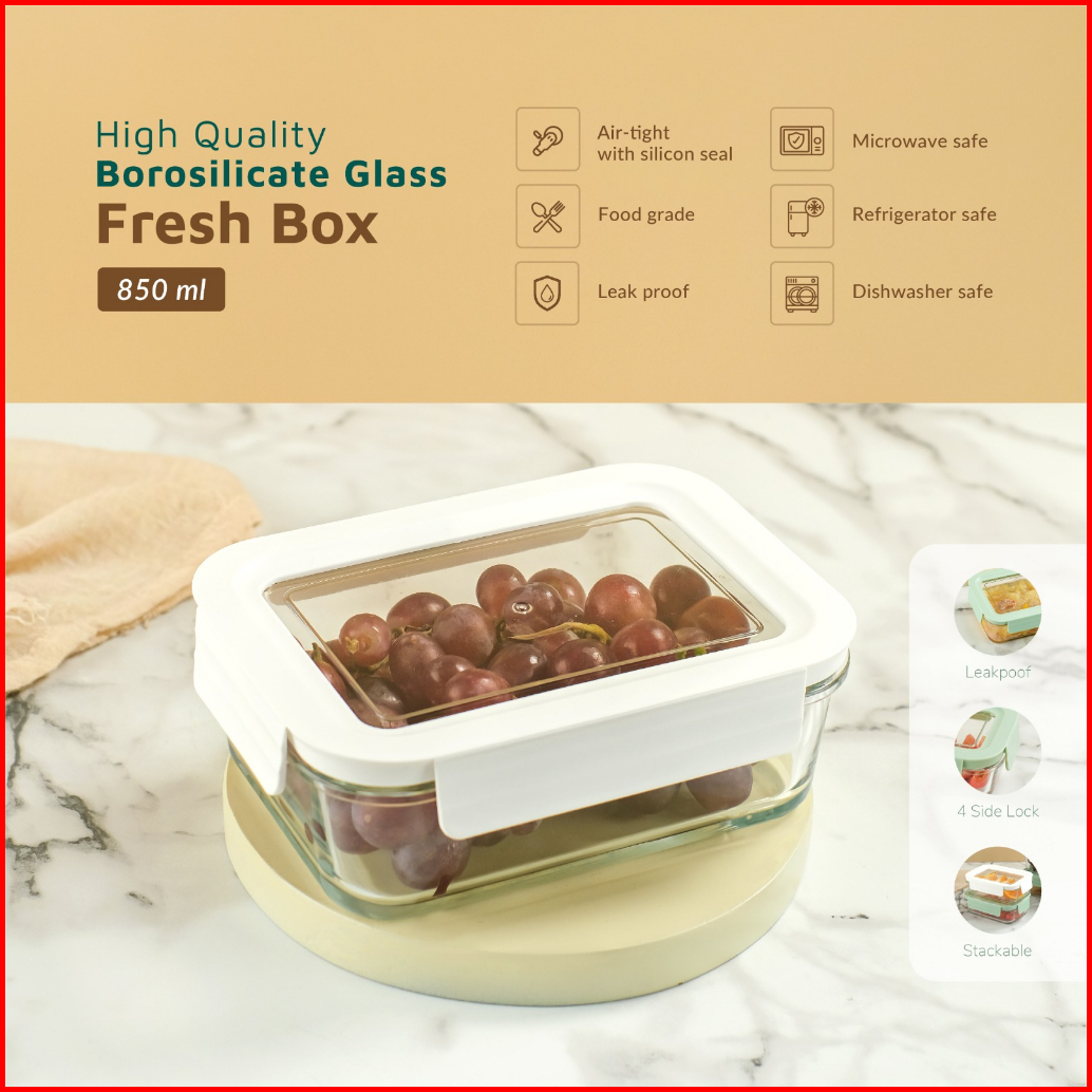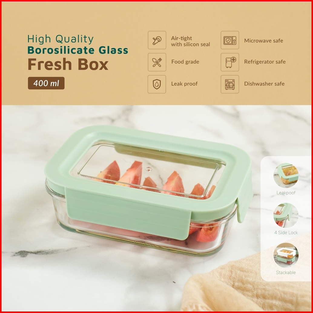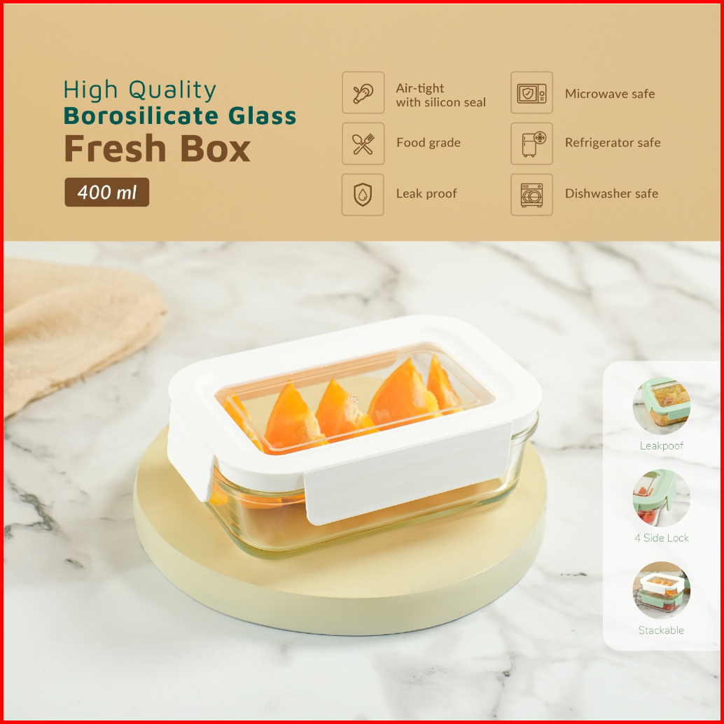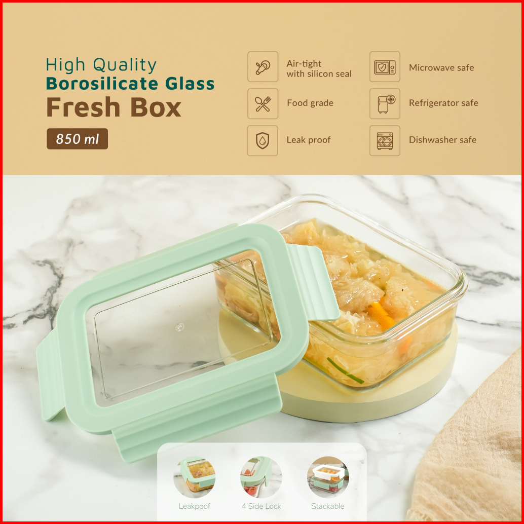 Wadah Makanan Kaca Barosilicate Kotak Bekal Microwave 400 Ml 850 Ml