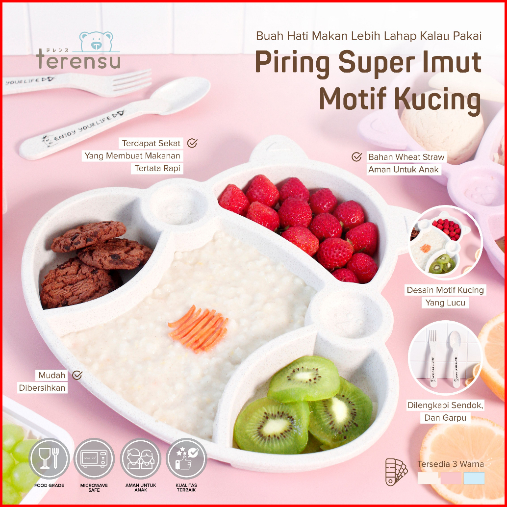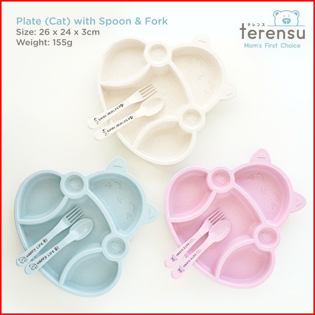 Terensu Piring Makan Anak Sendok Garpu Motif Kucing Set Perlengkapan Makan