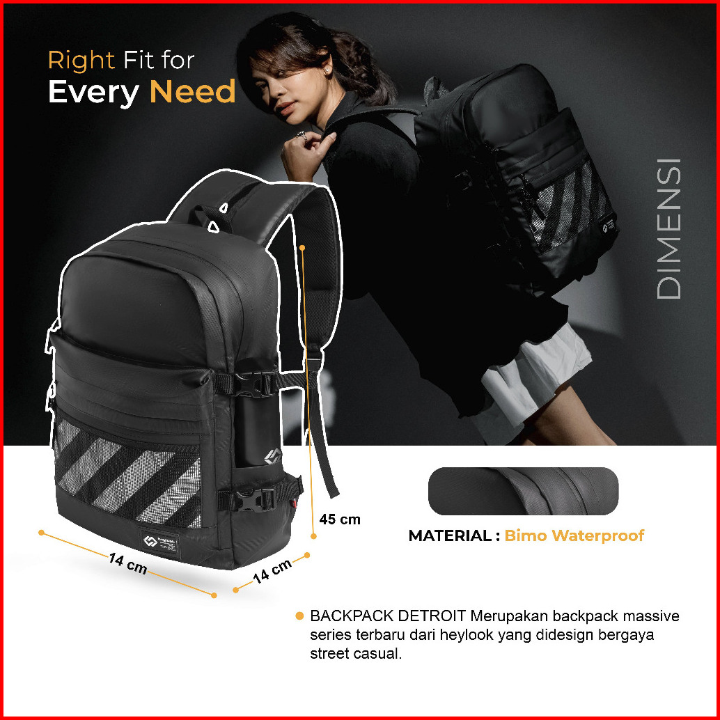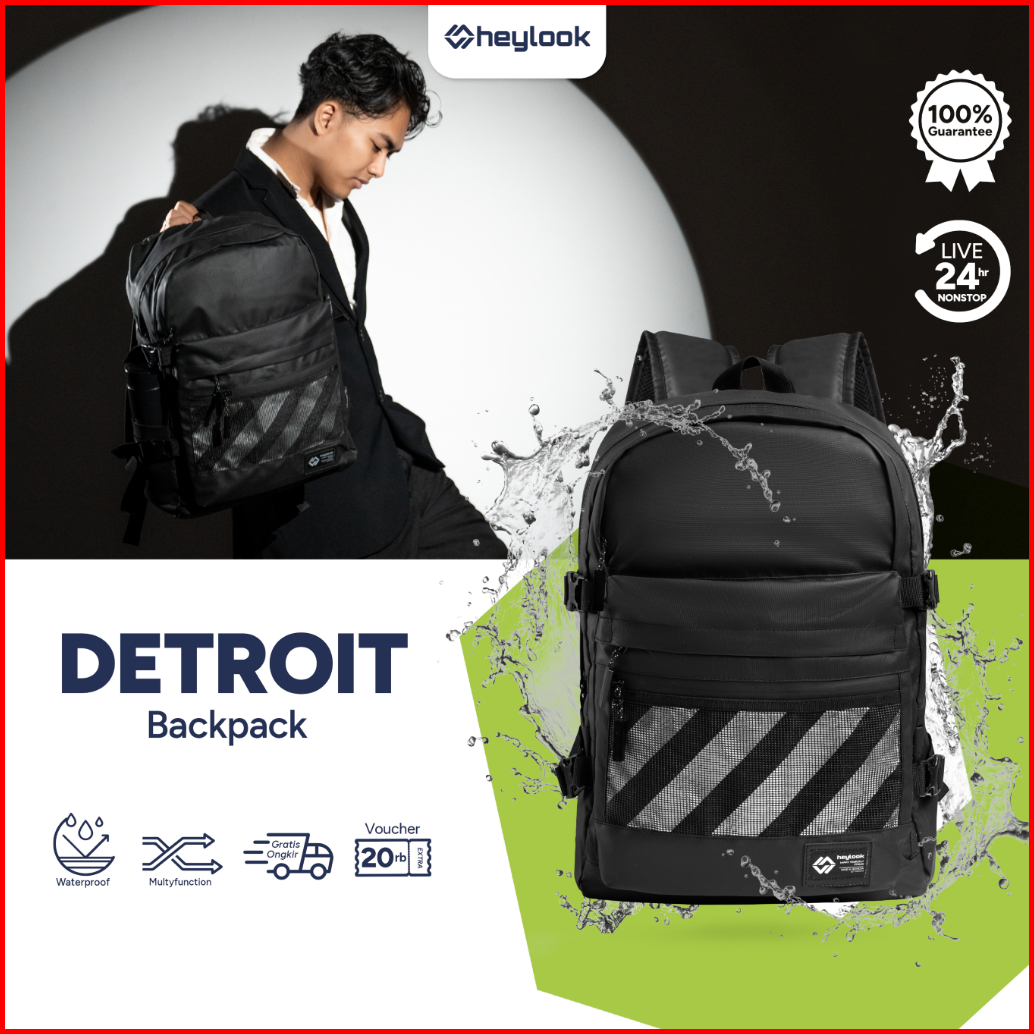 New Arrival - Tas Ransel Pria Detroit Tas Laptop Punggung Water Resist Backpack Cowok Tas Leptop Sekolah Kuliah Kerja He