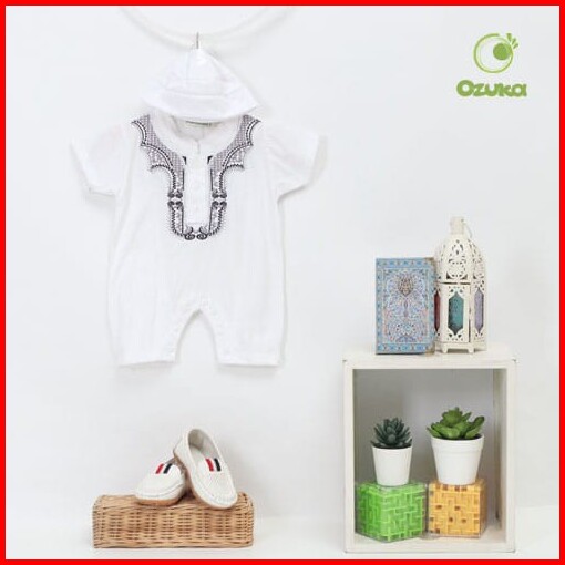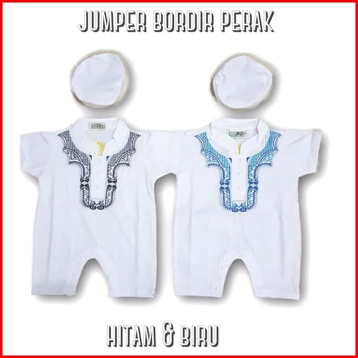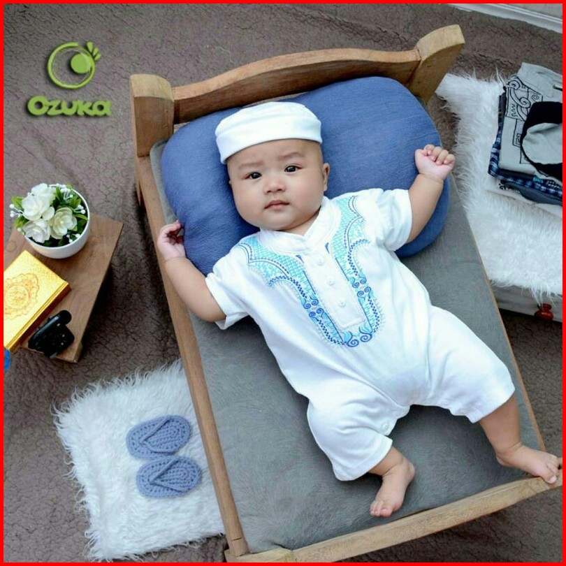 Baju Muslim Jumper Romper Koko Turki Bayi Laki-laki Aqiqah Bordir Newborn Set Peci Ozuka Kdm05