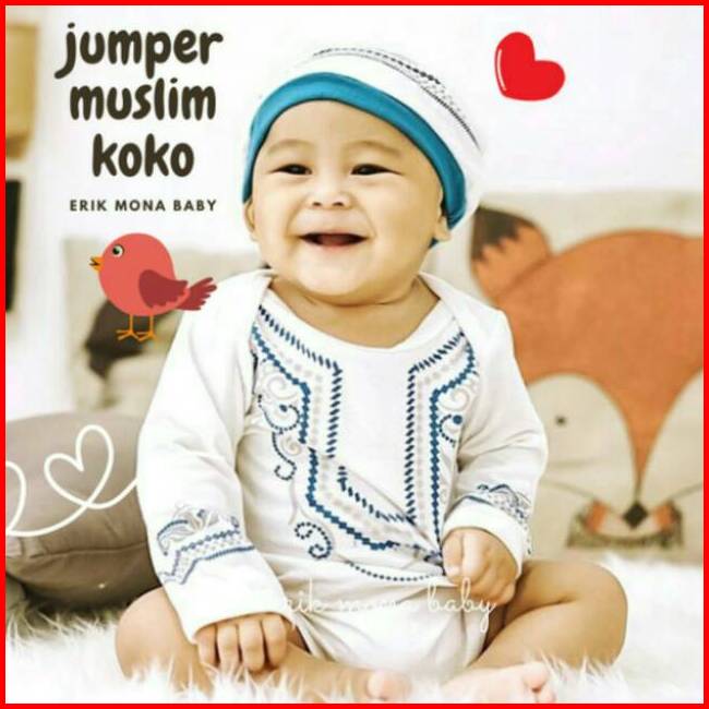 Jumper Koko Bayi Laki-laki Lengan Panjang Set Topi