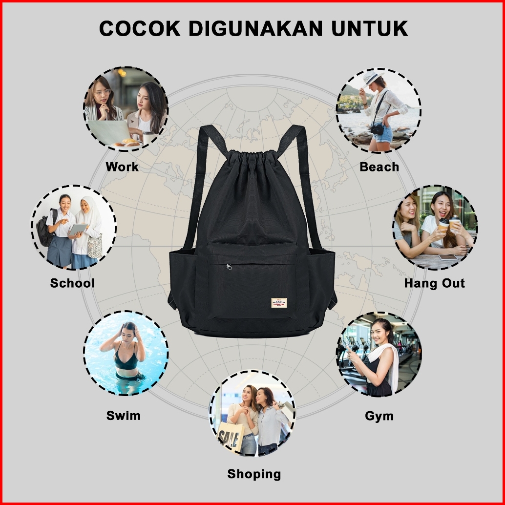 Tas Ransel Serut Multifungsi - Tas Serut Anti Air - Tas Olahraga
