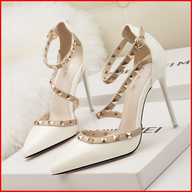 Premiumfancy Women S Cross Ankle Strap Rivet Heels 5162 Size 36-40