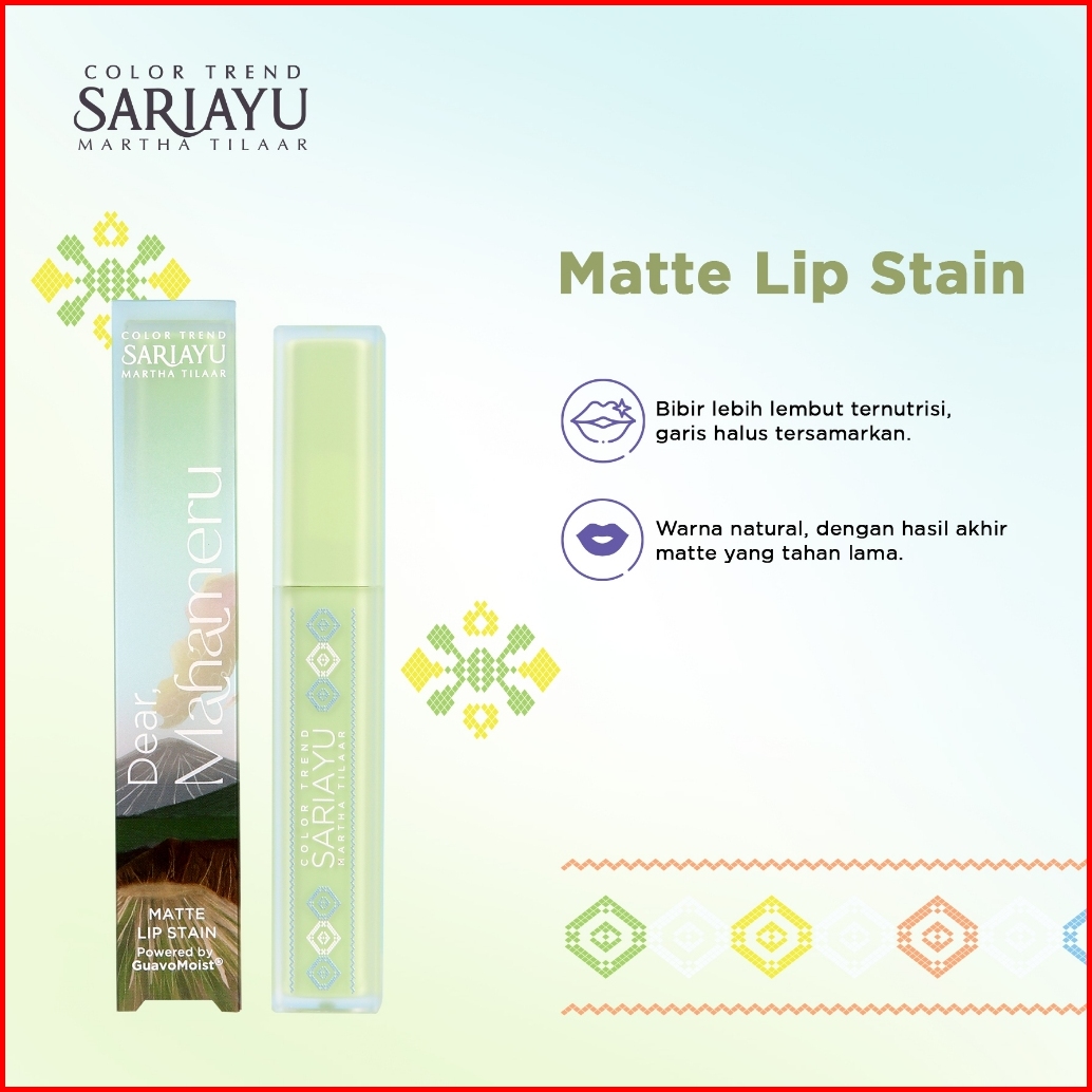 Sariayu Dear Mahameru Matte Lip Stain Vegan Tahan Lama Long Lasting Matte Finish Lip Cream Formula Ringan Lembut Pigment