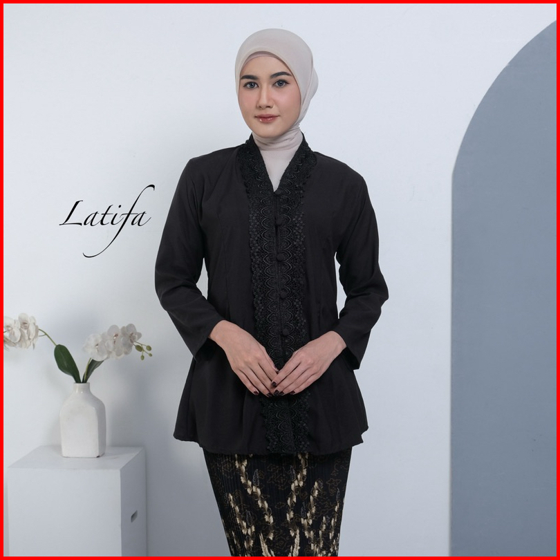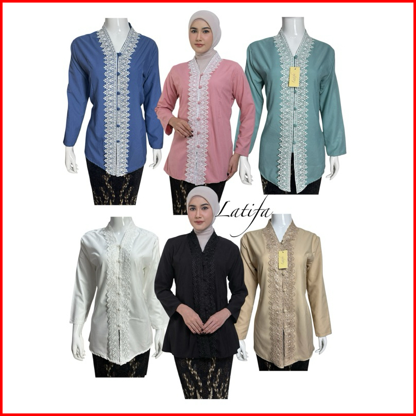 Kebaya Encim Modern Renda Motif Bunga Bahan Katun Mikro Lengan Panjang