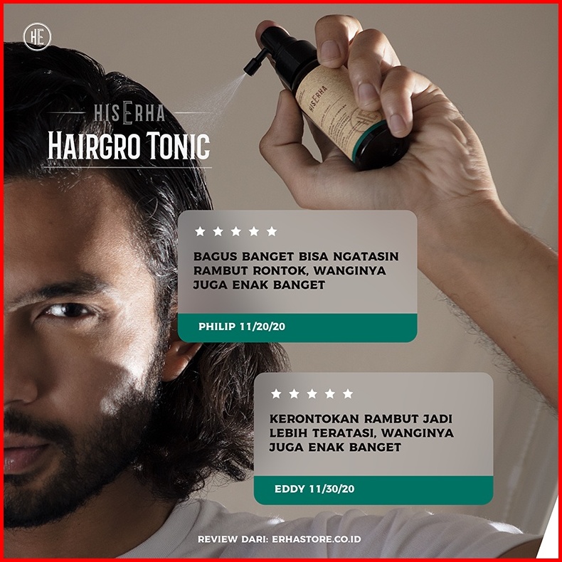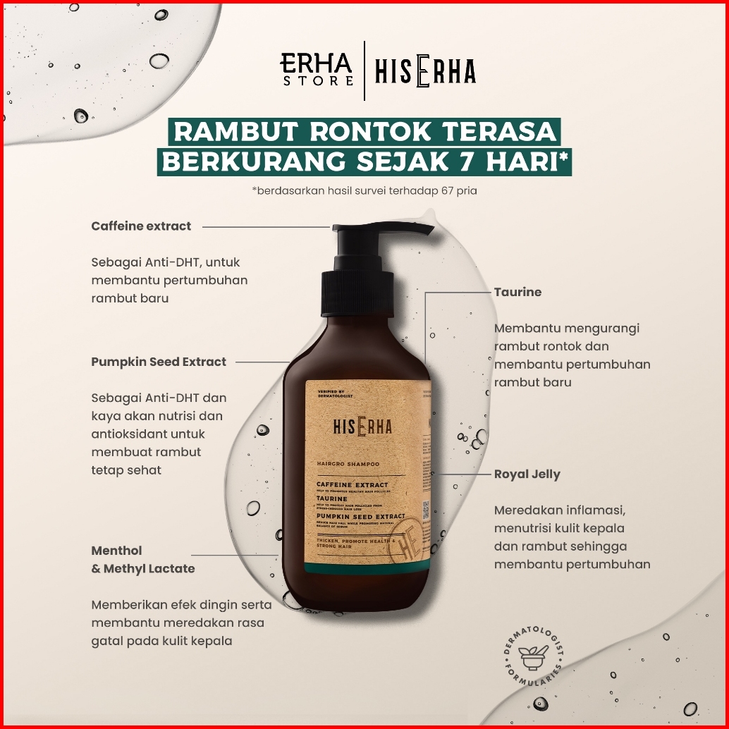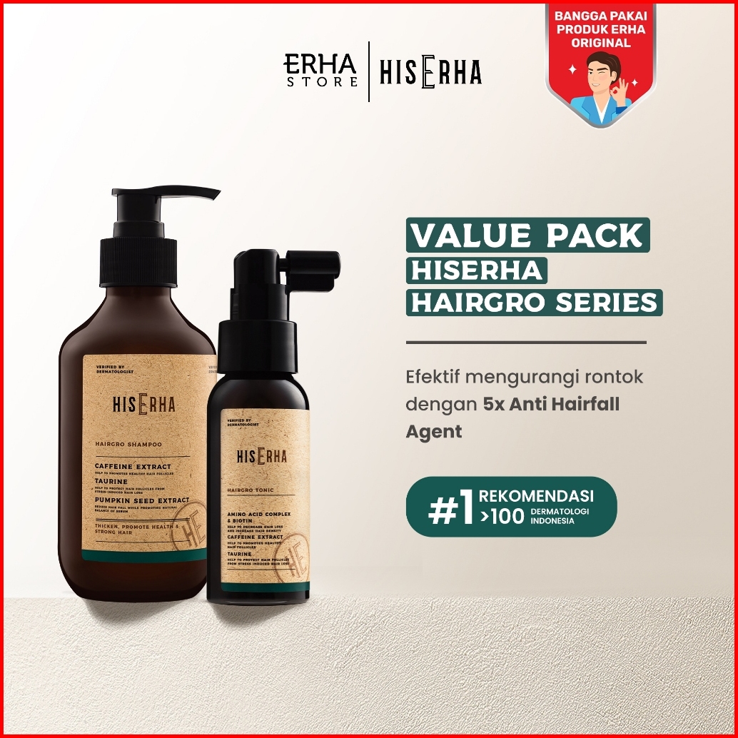His Erha Bundle Hairgro Series Shampoo 270ml Tonic 60ml - Kombinasi Perawatan Rambut Rontok Cegah Kebotakan Rambut Lebih