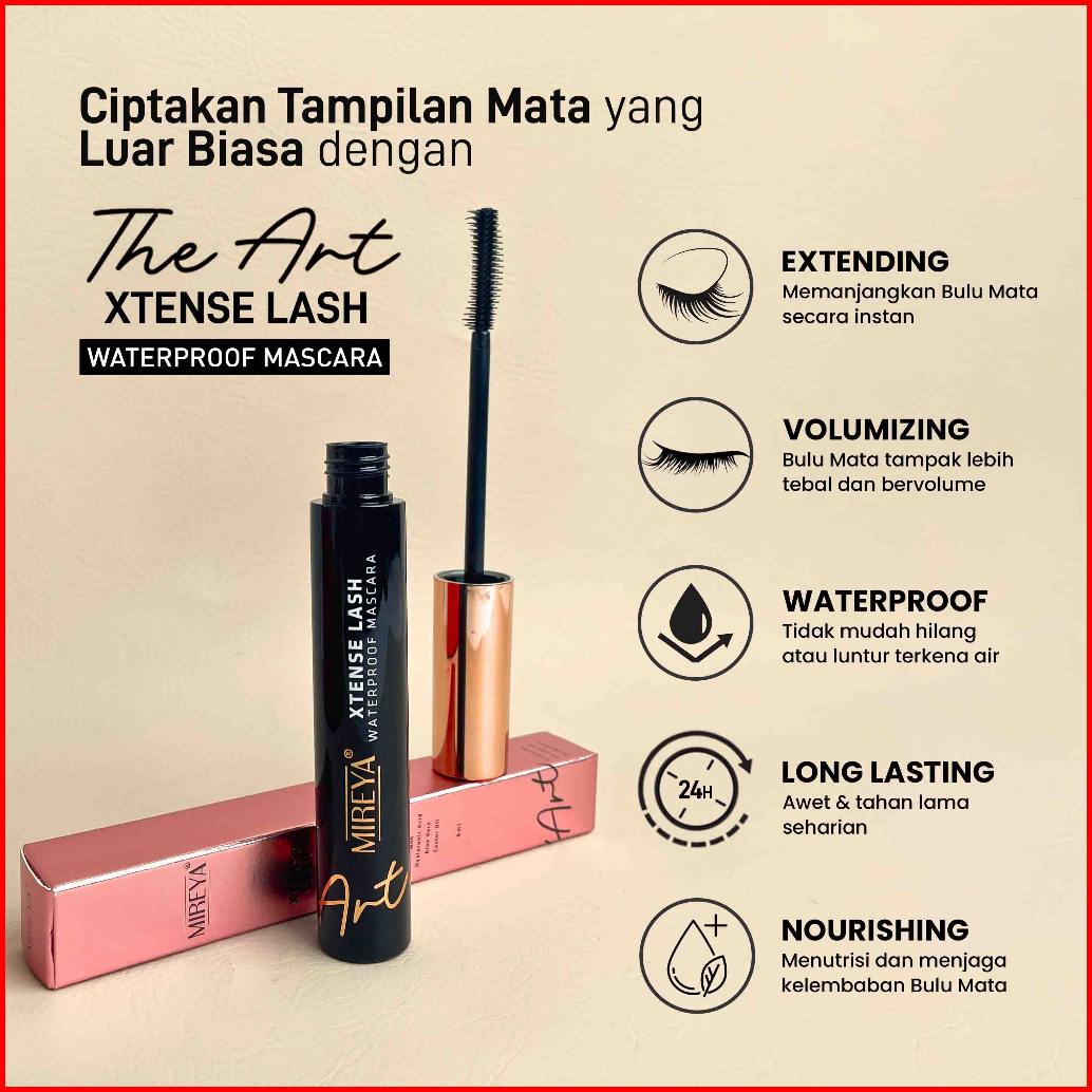 Mireya The Art Mascara Xtense Lash Waterproof Long Lasting 24h 3-in-1 Full Boost Memanjangkan Menebalkan Menutrisi Bulu