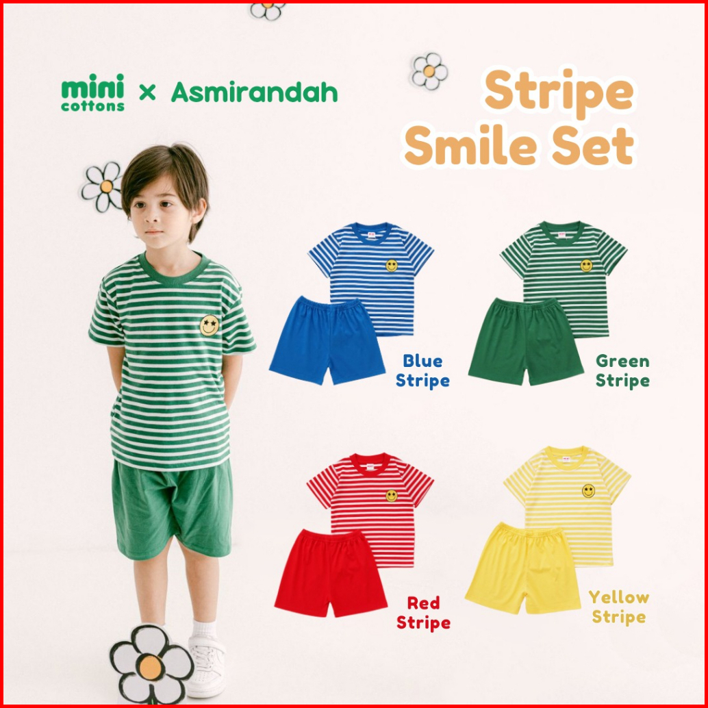 Clearance Minicottons Stripe Smile Kids Set Setelan Salur Anak 1-10 Tahun