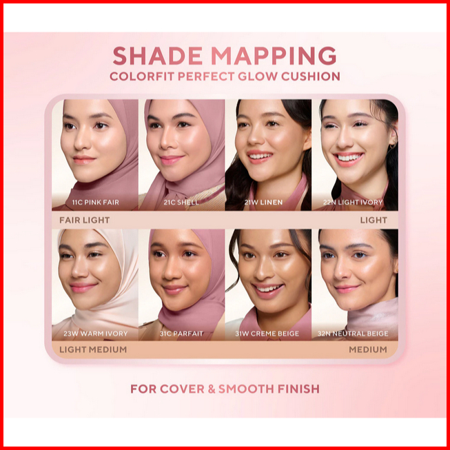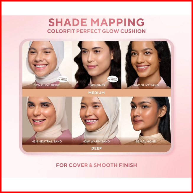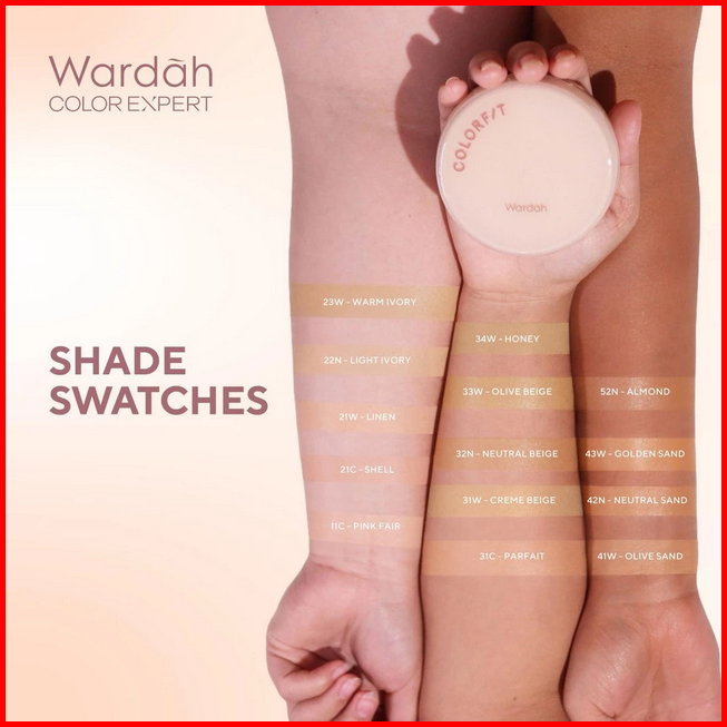 11C Pink Fair, 21C Shell, 21W Linen, 22N Light Ivory, 23W Warm Ivory, 31C Parfait, 31W Creme Beige, 32N Neutral Beige, 33W Olive Beige, 41W Olive Sand, 42N Neutral Sand, 43W Golden Sand, 52N Almond, 11C Pink Fair REFIL, 22N LightIvory REFIL, 23W Warm Ivory REFIL, 32N Neutral REFILL, 22NLight Ivory REFIL, 31W CremeBeige REFIL, 21C Shell REFILL, 21W Linen REFILL, 33W OliveBeige REFIL