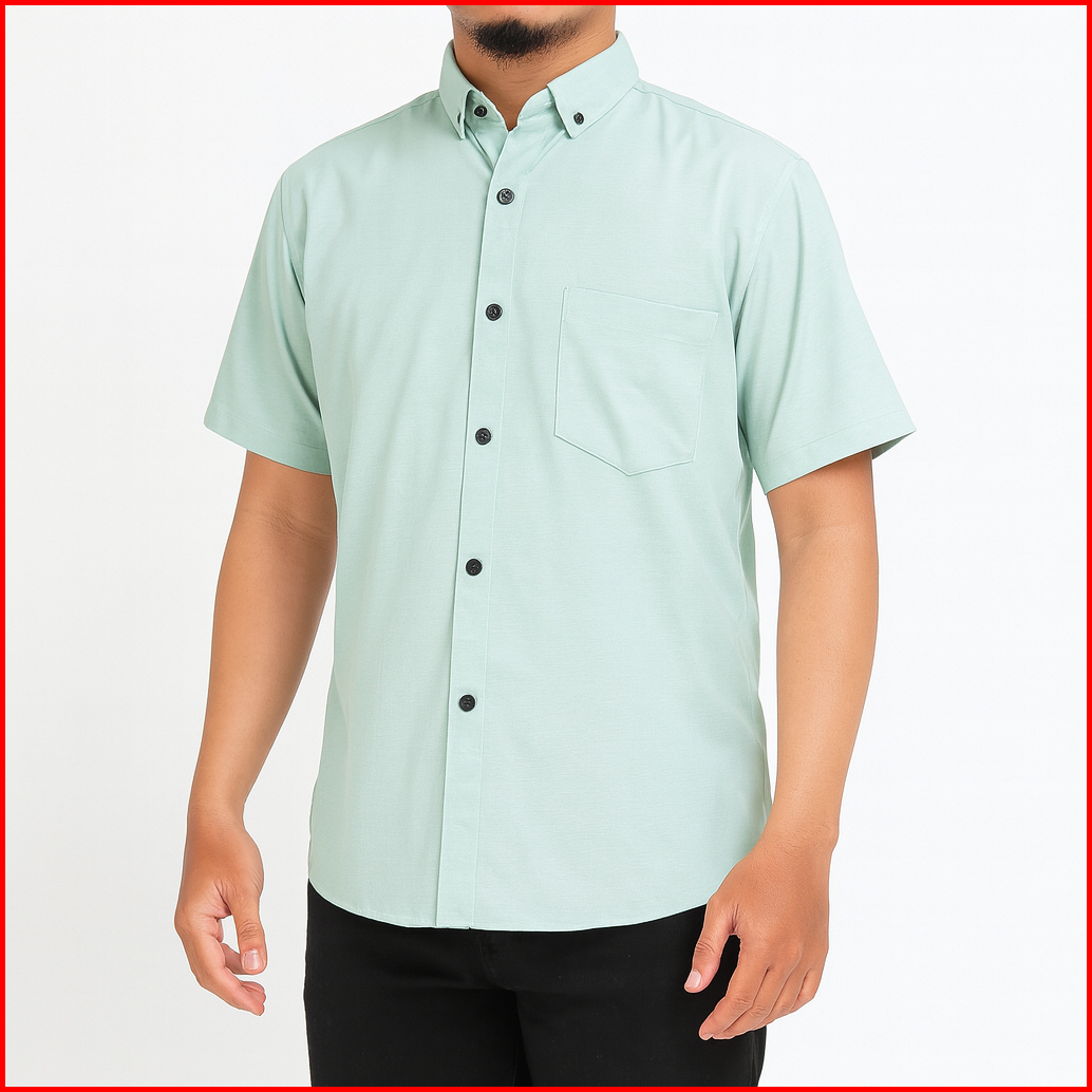 Kemeja Cowok Polos Lengan Pendek Jumbo Abu Tua Kerja Kantor