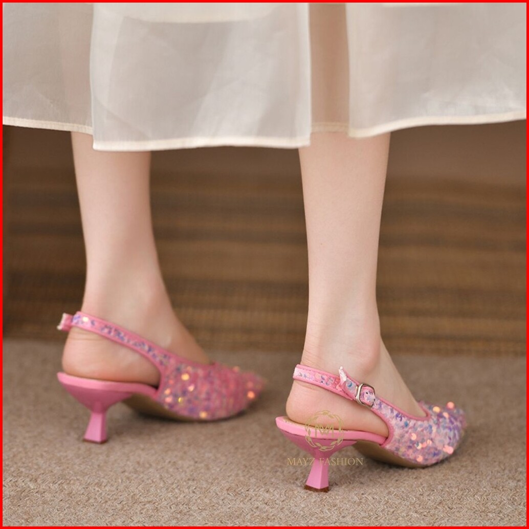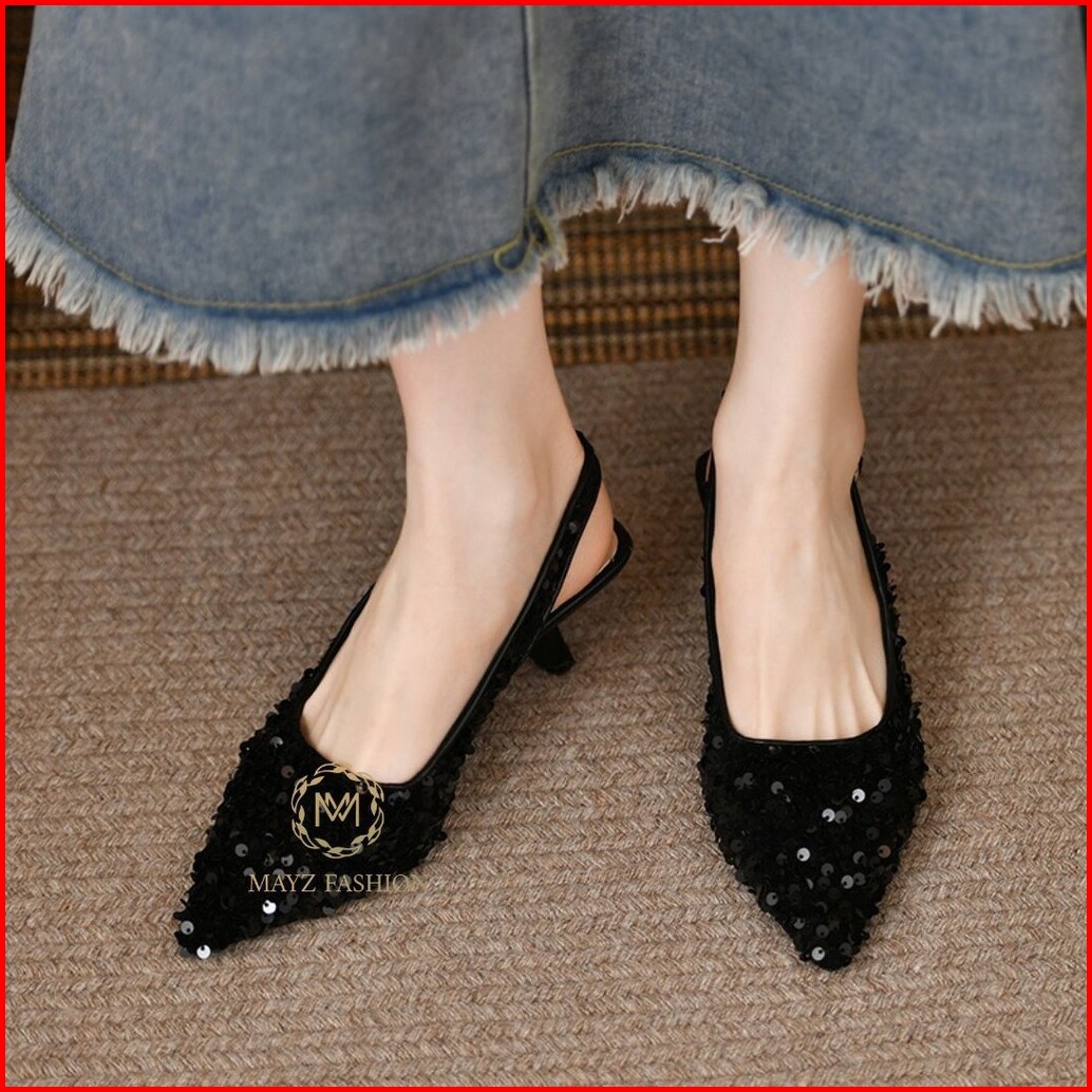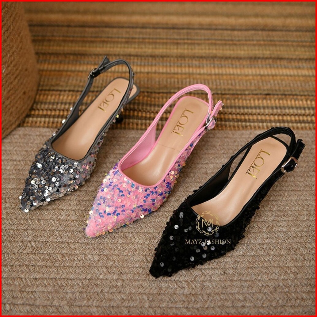Sepatu Heels Pesta Sequins Kulit Sintetis 3cm
