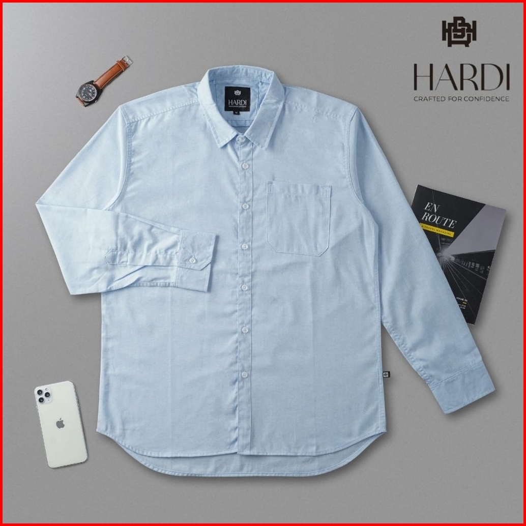 Hardi Everyday Kemeja Pria Lengan Panjang Biru Muda Single Pocket Polos Kasual Kantor Harian